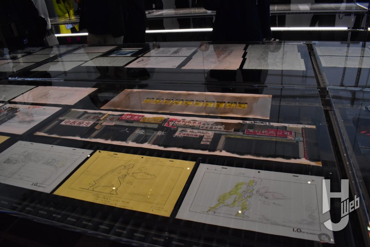 会場内ではこれまでの『攻殻機動隊』アニメ作品の原画資料1600点以上が一挙に展示されている。各タイトルごとに、背景資料やセル画など貴重な資料をじっくり眺めることができる。