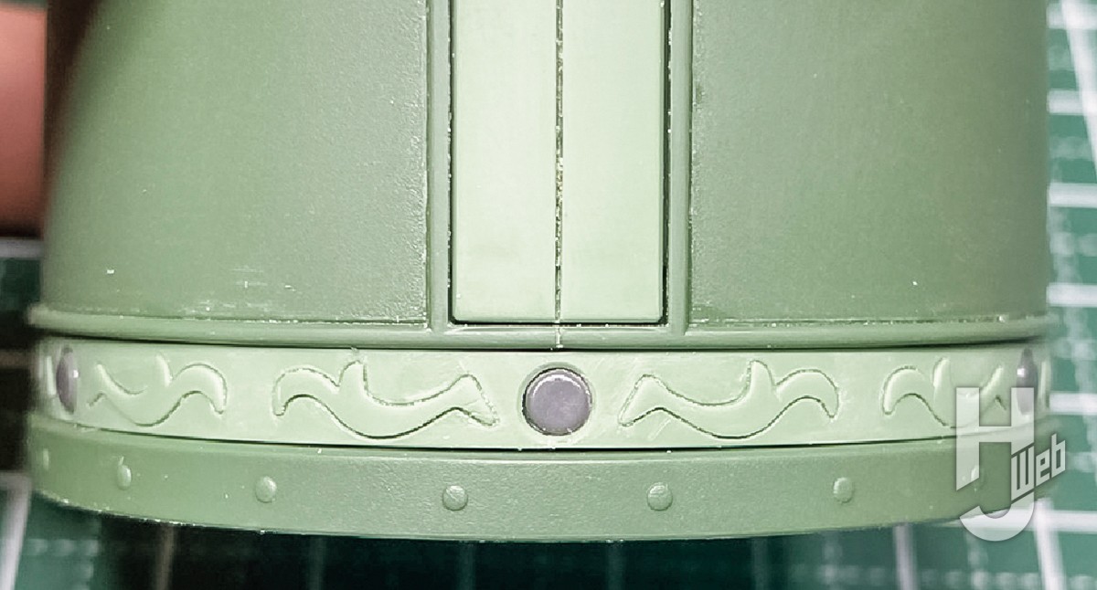 また、防御形態時の上半身を収納するパーツがどうしても閉じ切らないので、今回は小さなネオジム磁石を端部に埋め込み、磁力でピッタリ閉じるようにしています。