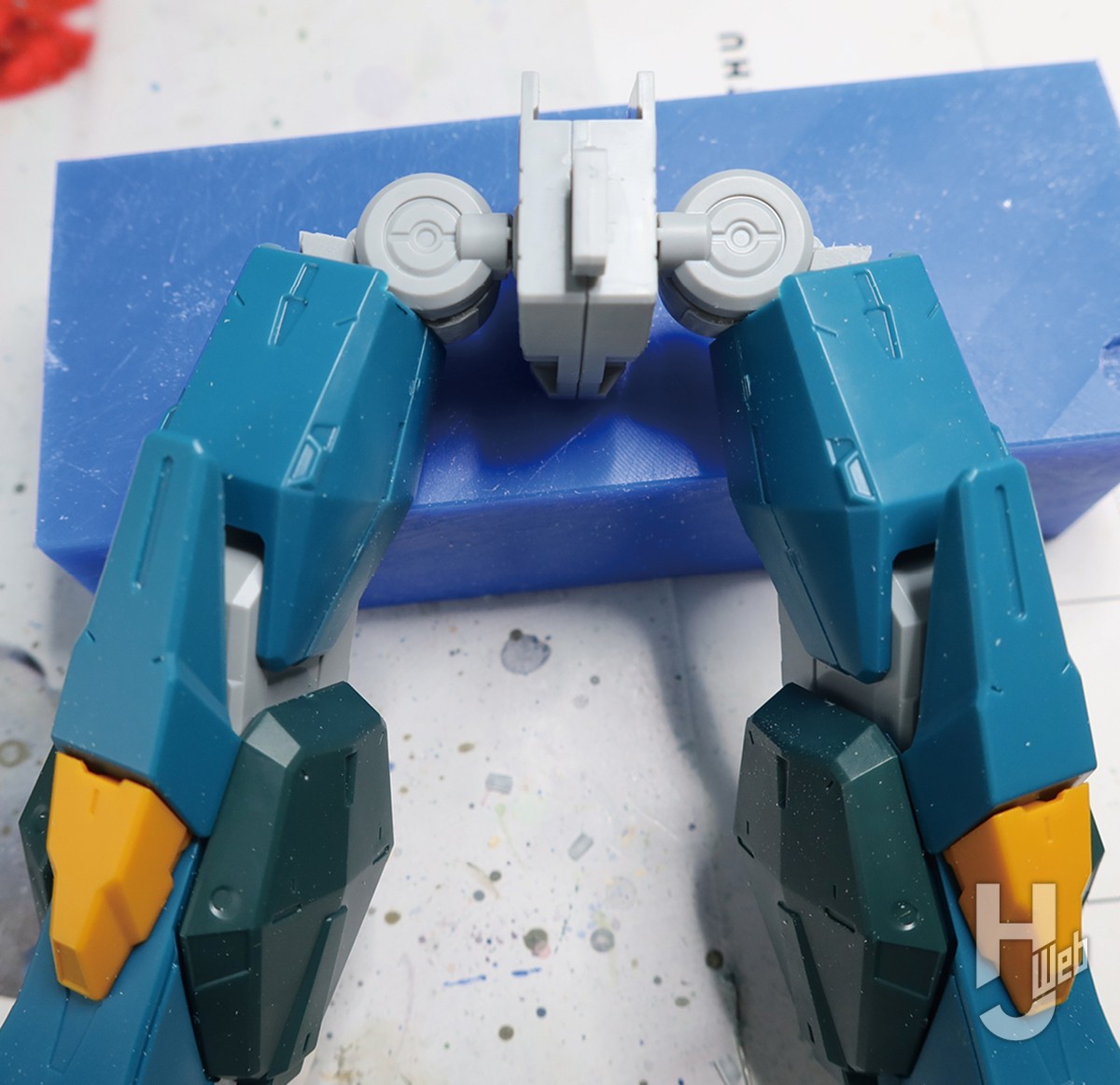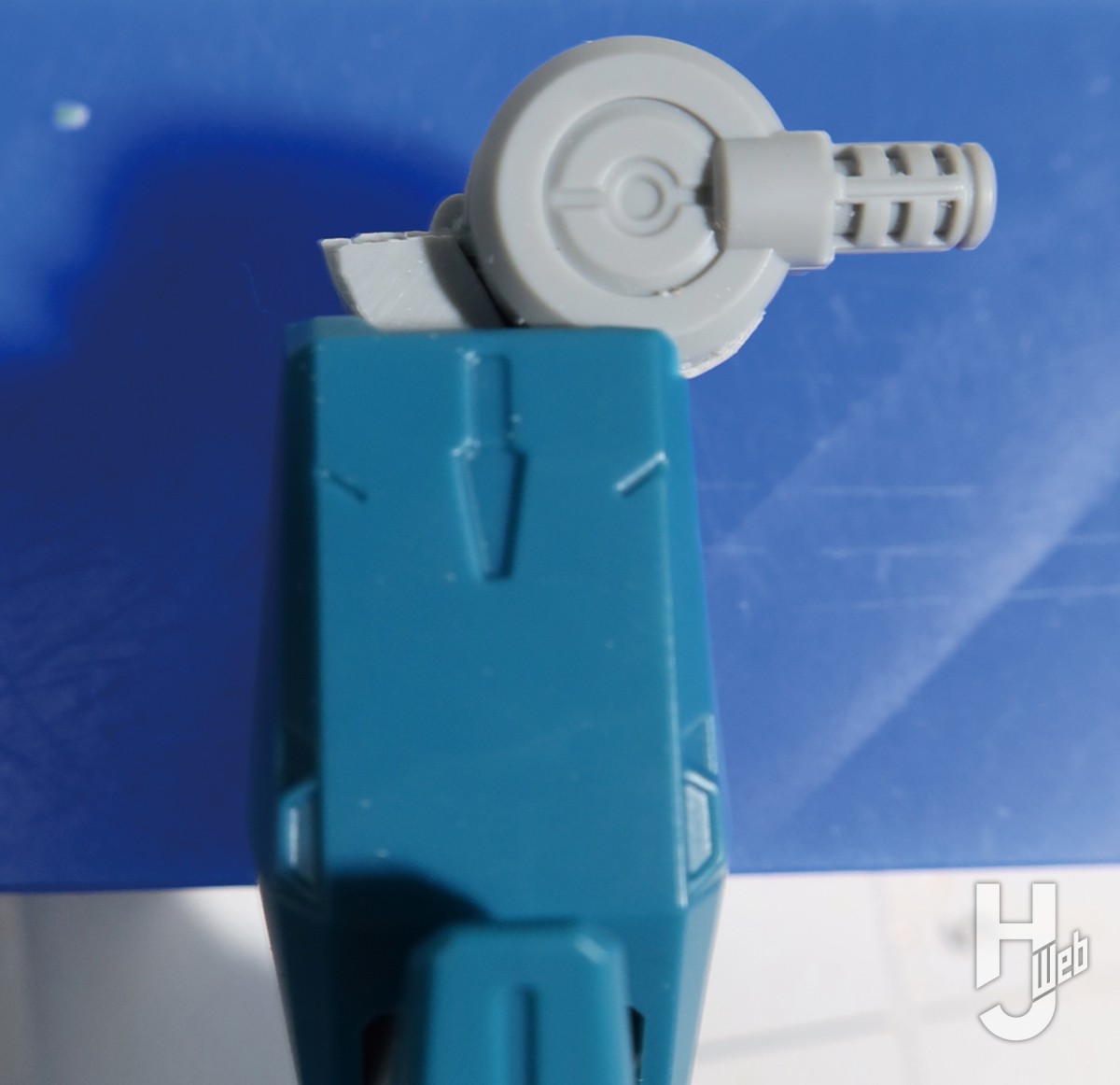 ▲脚部が外側に移動したので、同じようにサイドアーマーも外側に移動させないといけません。まずはサイドアーマー接続用のボールジョイント部分を根元から切り離します