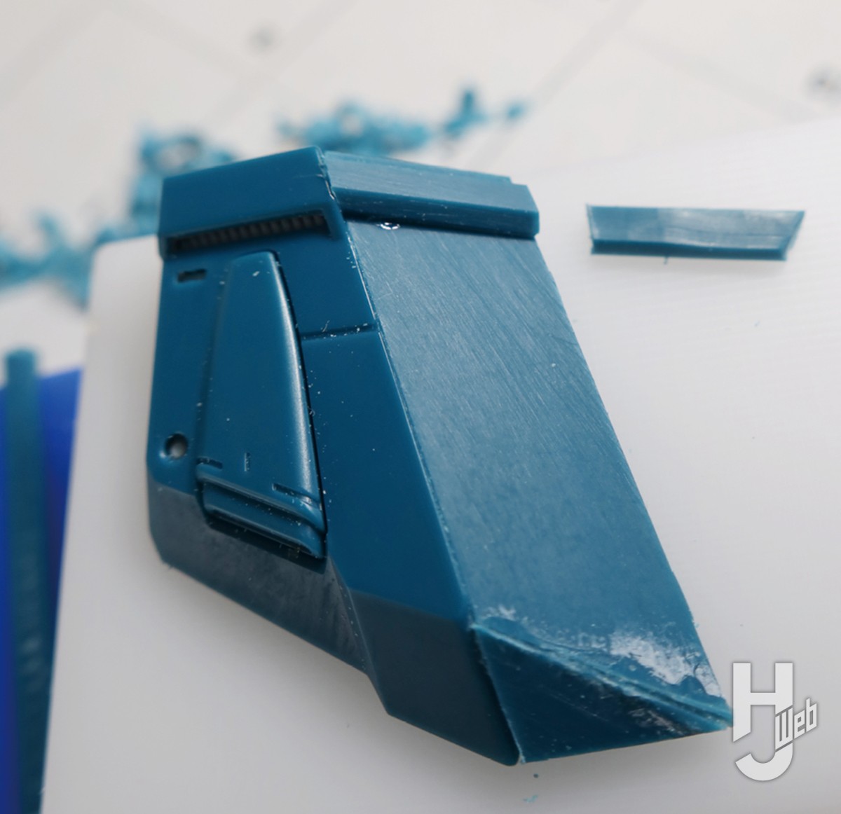 ▲それほど強度は必要なさそうな部位ですが、裏面もランナープラ板のリブを通してしっかり補強します