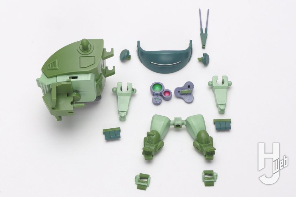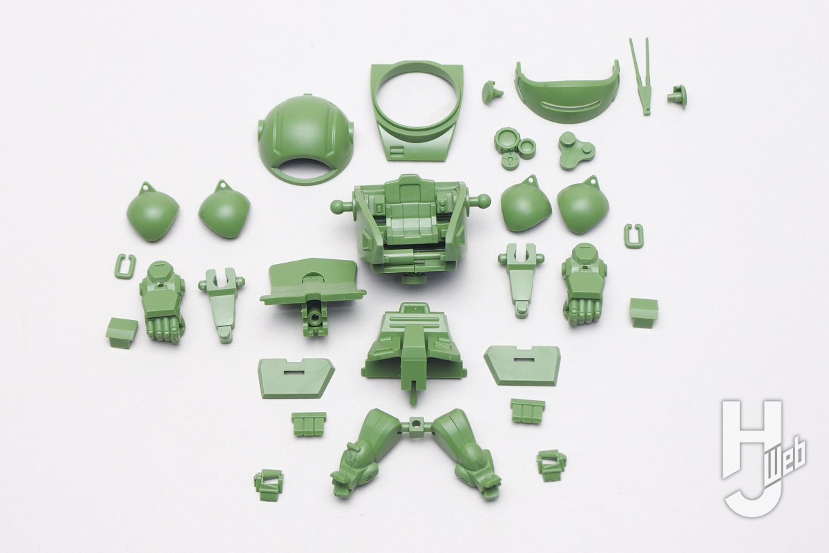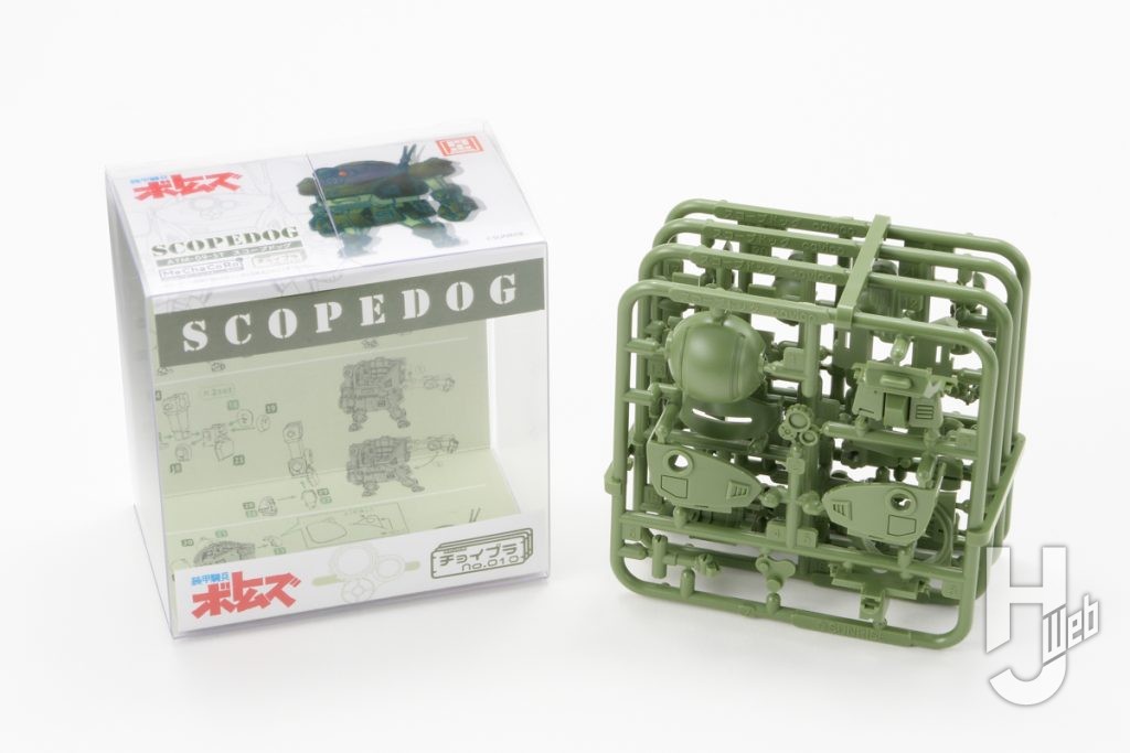 ▲ディフォルメスタイルで精密感もある単色キット。75mmサイズのランナーでコンパクトにまとめられたパッケージ。上面のイラストが塗り分けの参考になります