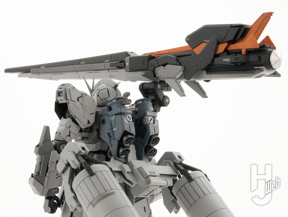 そんな妄想を足がかりに今回はRG νガンダムをベースに、気付けばだいぶ充実してきた本体バリエーションを含めたオプション装備を複数使用して、ファーストロットカラーで製作しました。