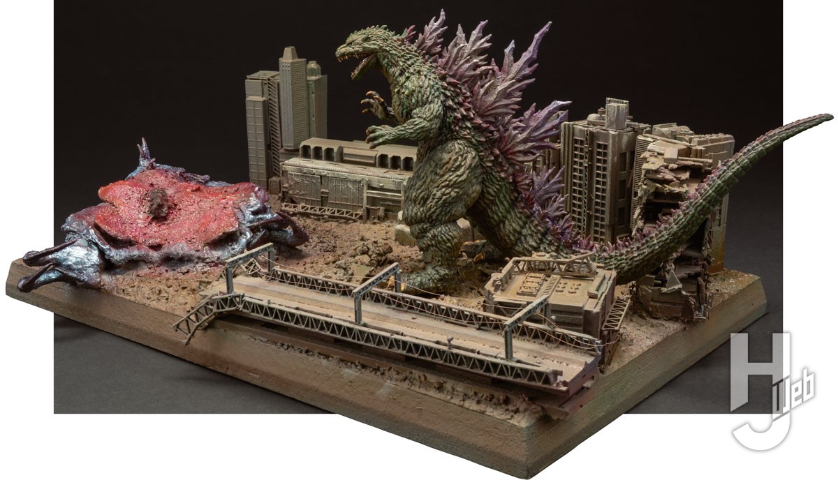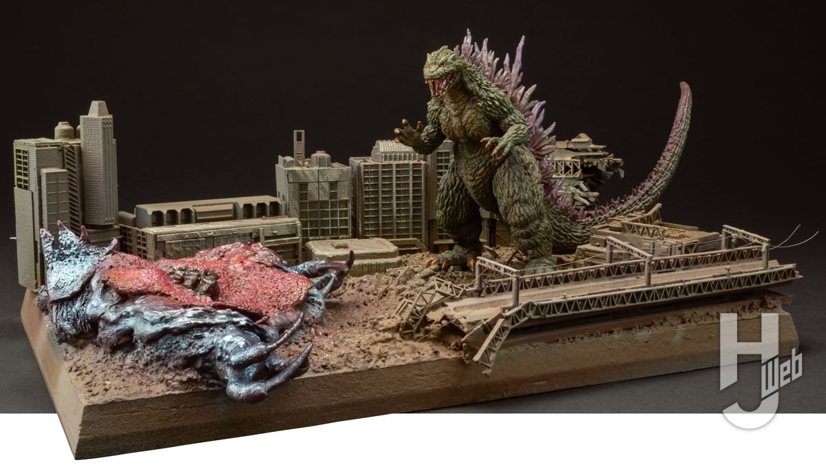 筆塗り+電飾で『ゴジラ2000 ミレニアム』のラストバトルをディオラマ化!!