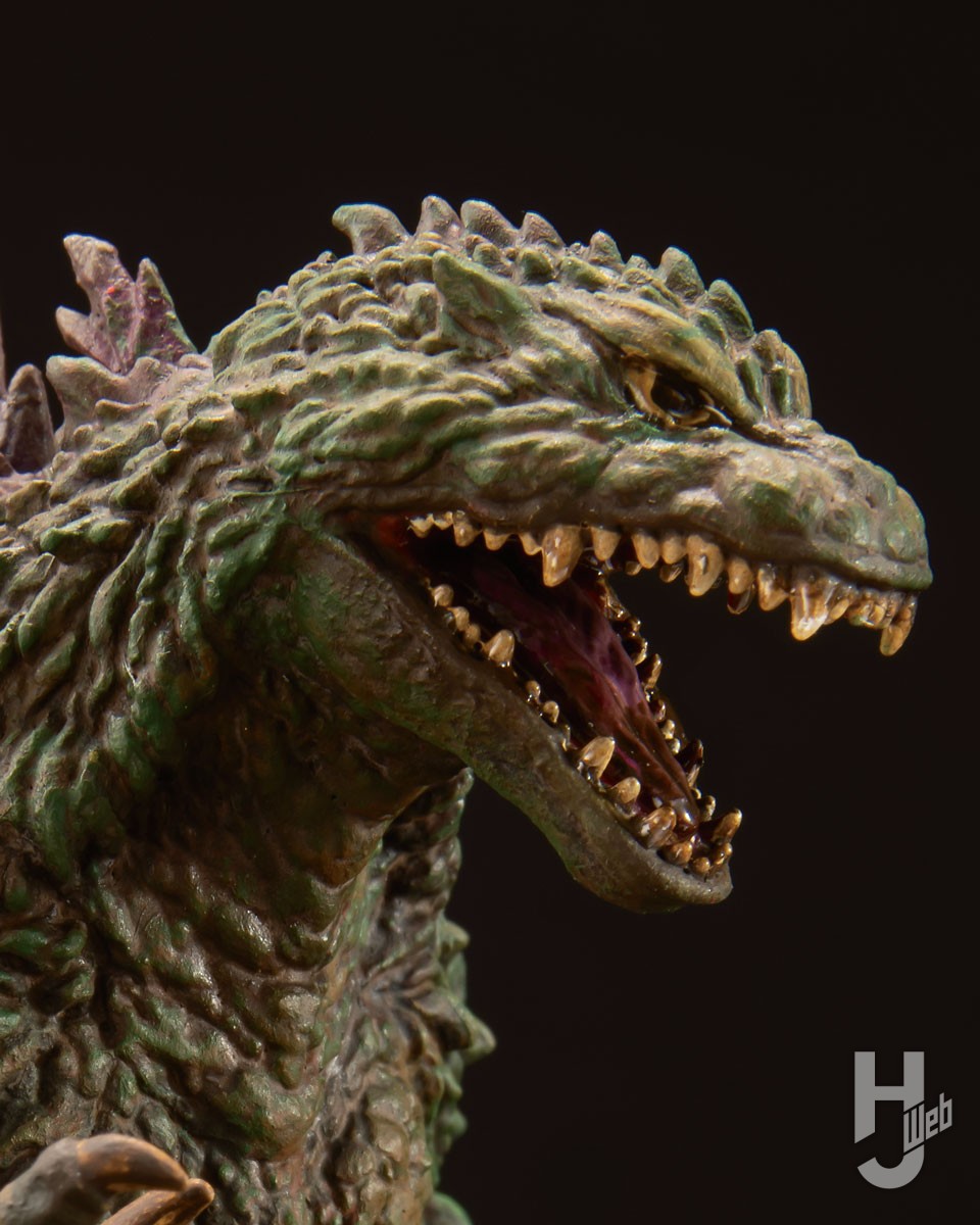 新生ブランド「PLAfig.」第2弾となる「ゴジラ(1999)」は、本誌連載「H.M.S.」にも参加しているRYOねんど星人が原型を担当。躍動感あふれる造形が全高約13cmという手頃なサイズに凝縮された見ごたえたっぷりのキットである。今回の作例ではその緻密な造形をさらにアクリルガッシュによる筆塗りで強調し、オルガとの激しいバトル後の姿を表現した。