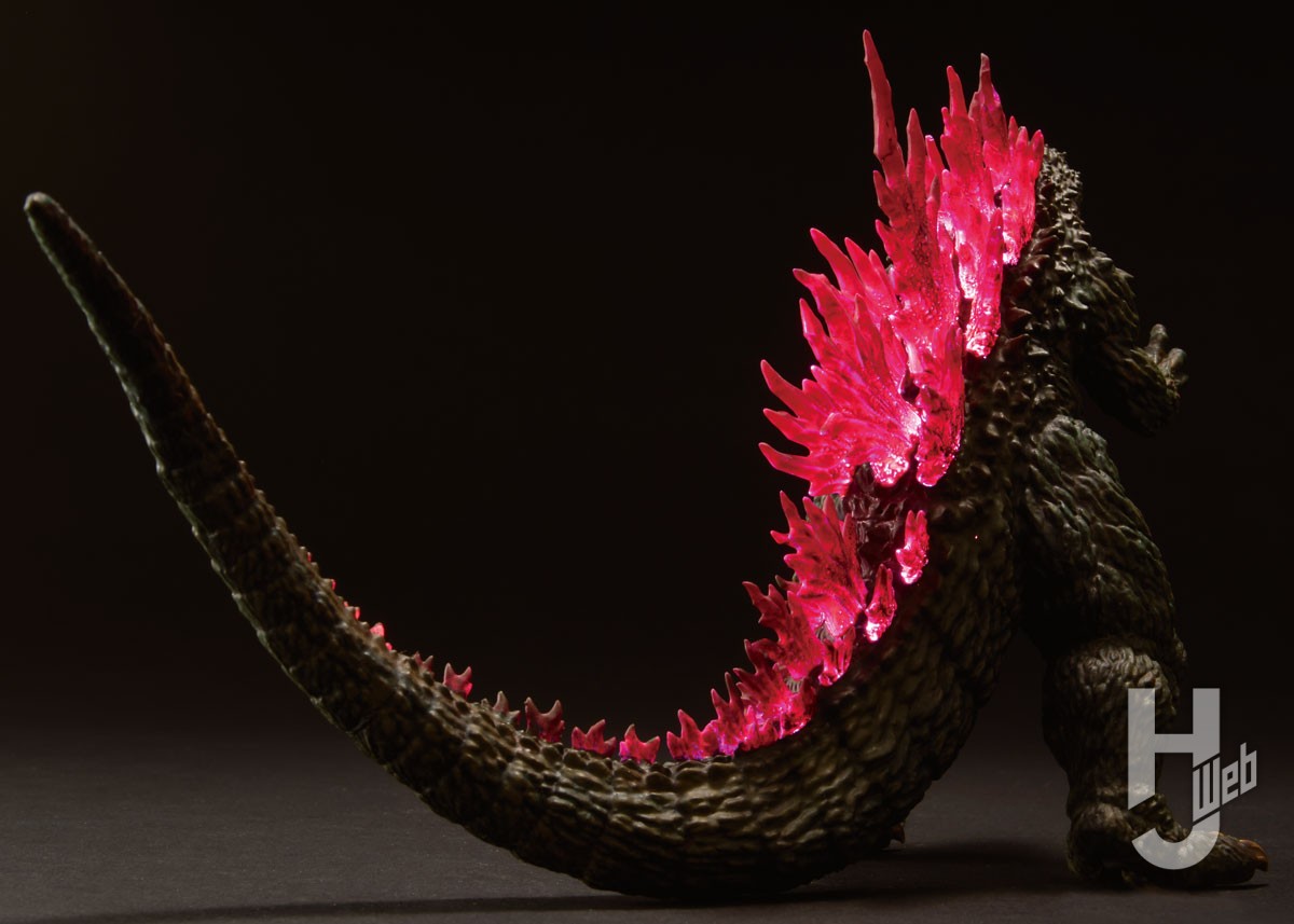 こちらは青島文化教材社のオンラインショップ限定で付属する、クリアー成型の背ビレパーツを利用した電飾版。キットのインナーパーツを使用せず、外皮のパーツのみをモナカ状に組み立ててLEDを仕込むという、少々変則的な製作法のため、誰にでもおすすめできる方法ではないが、クリアーパーツならではの楽しみ方として腕に覚えのある方は挑戦してみては?