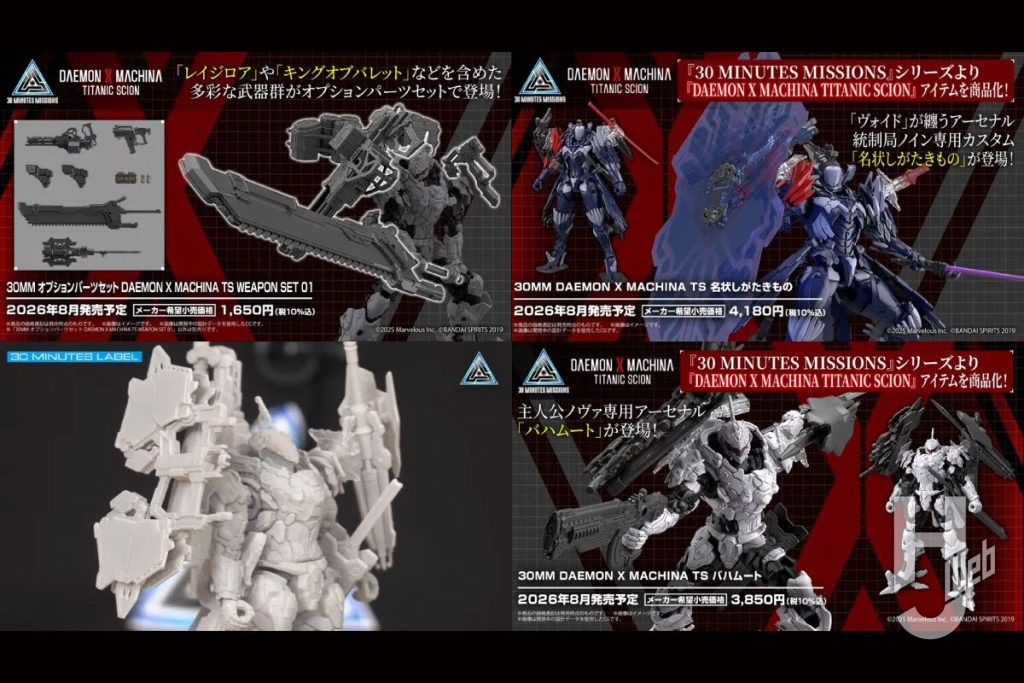 本日2月10日(火)に「第13回 30MINUTES LABEL 新商品発表会」が配信! 番組内で発表された「30MM DAEMON X MACHINA TITANIC SCION」新商品のラインナップを速報レポート。今回発表された商品は明後日2月12日(木)より順次予約開始、そして2月末に大阪で開催予定の「30 MINUTES LABEL FES.2025」にも展示予定。お見逃しなく!