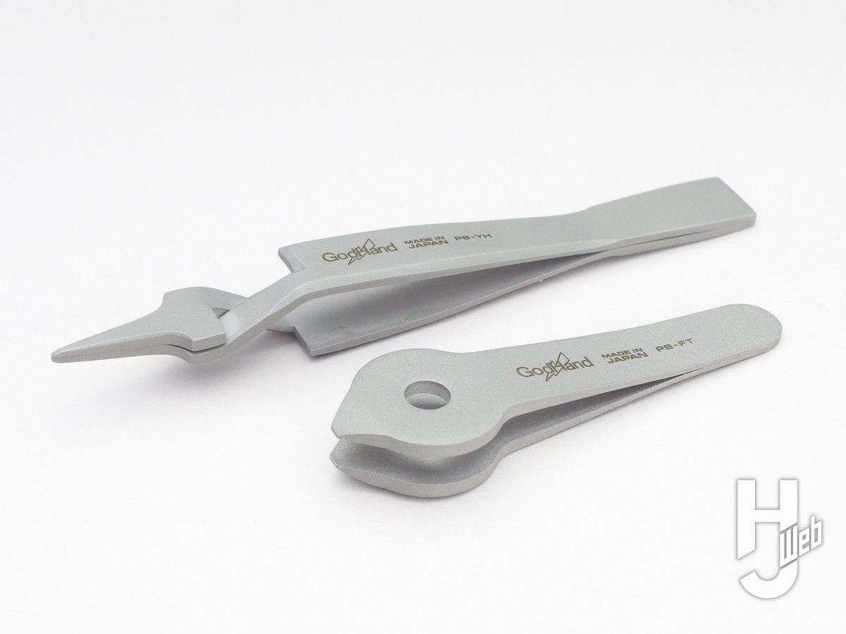 プロモデラーノモケンが気になるアイテムや試してみたいものを紹介するこのコーナー。今回取り上げるのはゴッドハンドの直販web限定で販売されているピンセット「指先ピンセット」と「パワーヤスリホルダー」。どちらも一般的なピンセットとは異なるスタイルで、特定の作業や場面で役立つタイプの工具。それぞれの特徴と、活用シーンを紹介していきます。