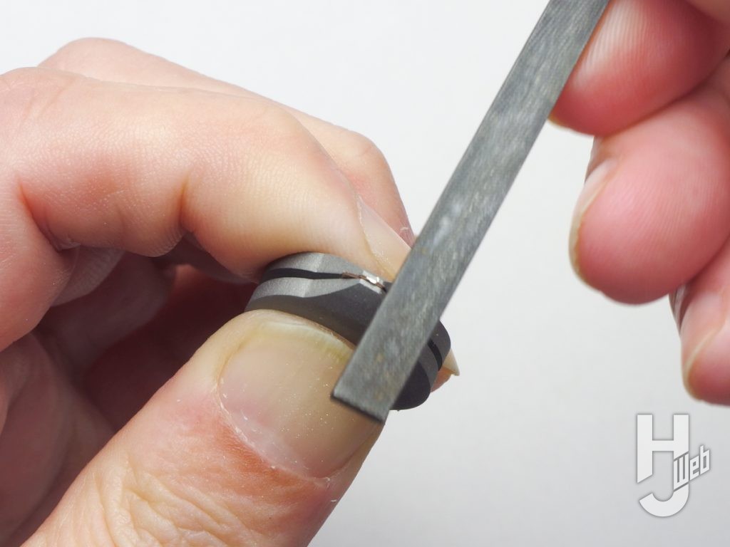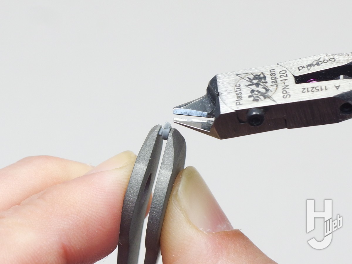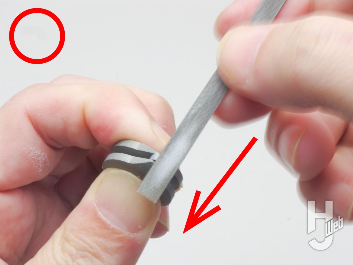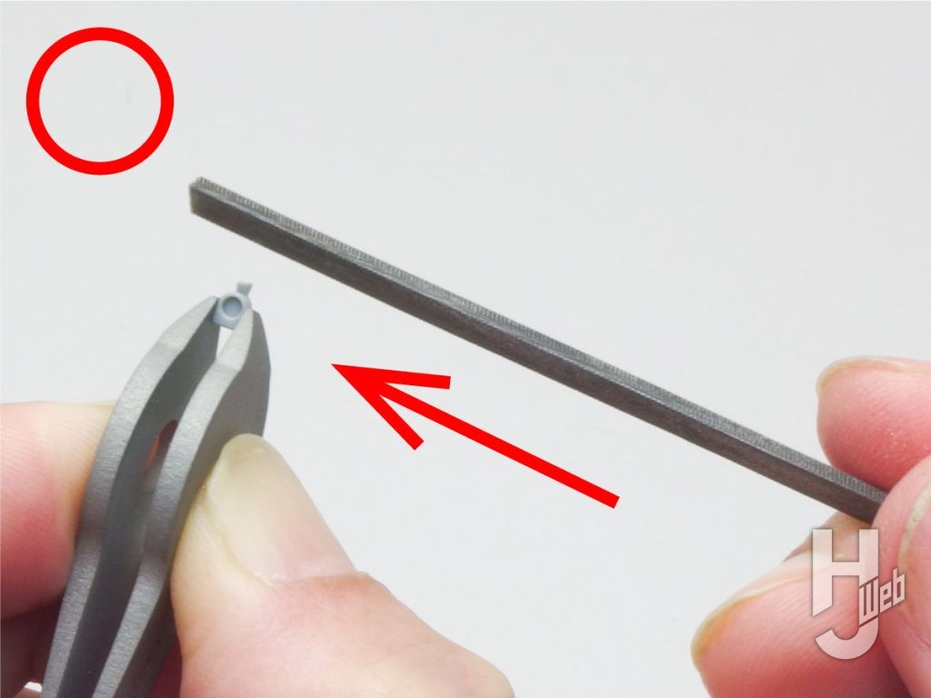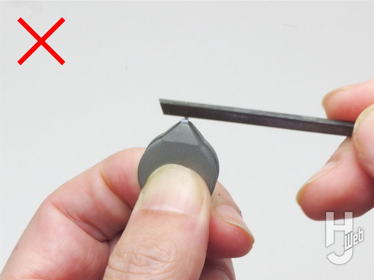 ▲摘まんだパーツをヤスリで整形。その際は挟んだ側から動かすようにします