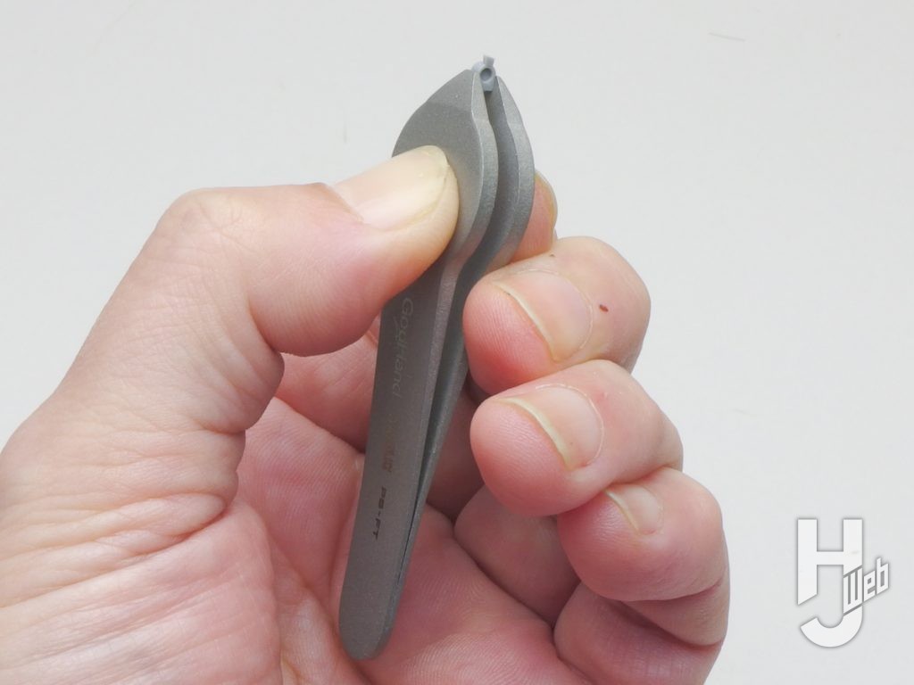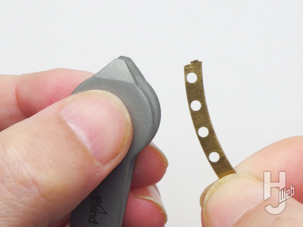 ▲パーツの際をしっかり掴めるのはエッチングパーツのゲート処理でも便利そうです。パーツ上端に切り離したゲートがあります