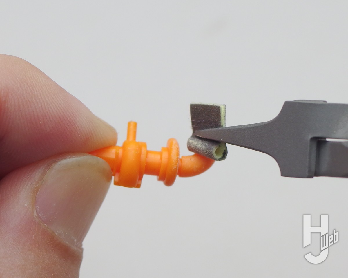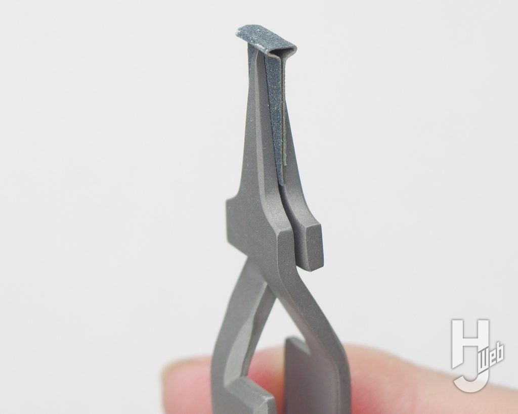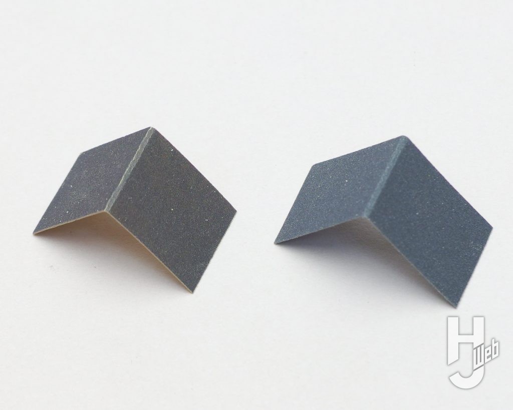 ▲他にもミゾのケバ取りや凹凸モールドの隅のシャープ化といった整形で、紙ヤスリが扱いやすくなります