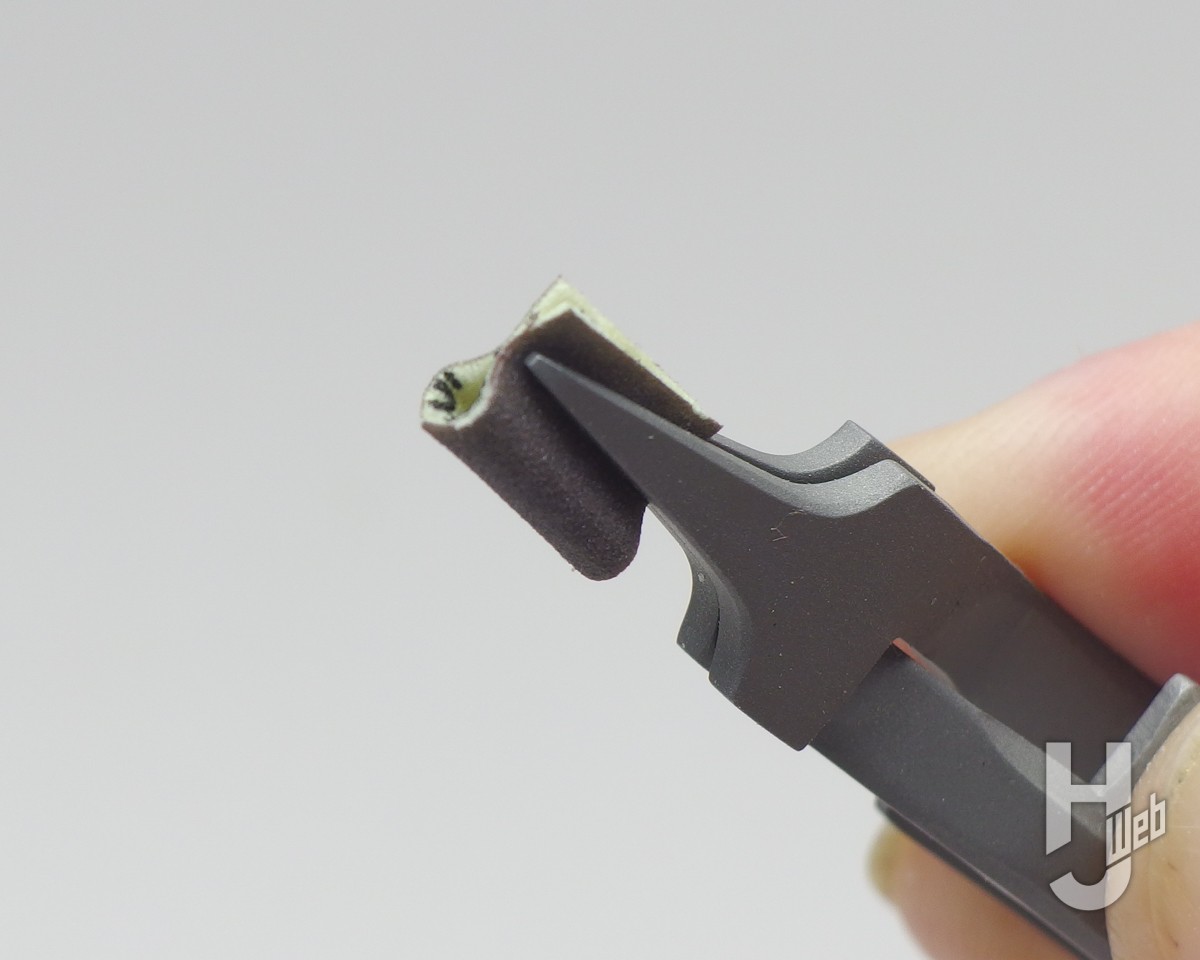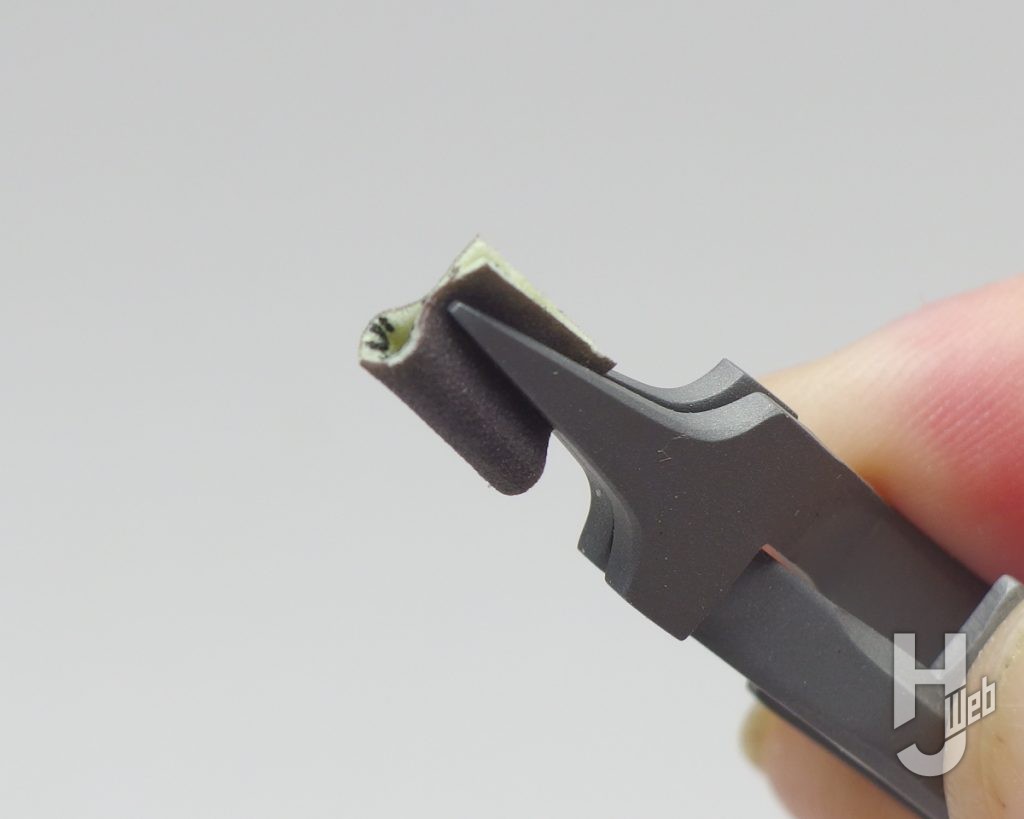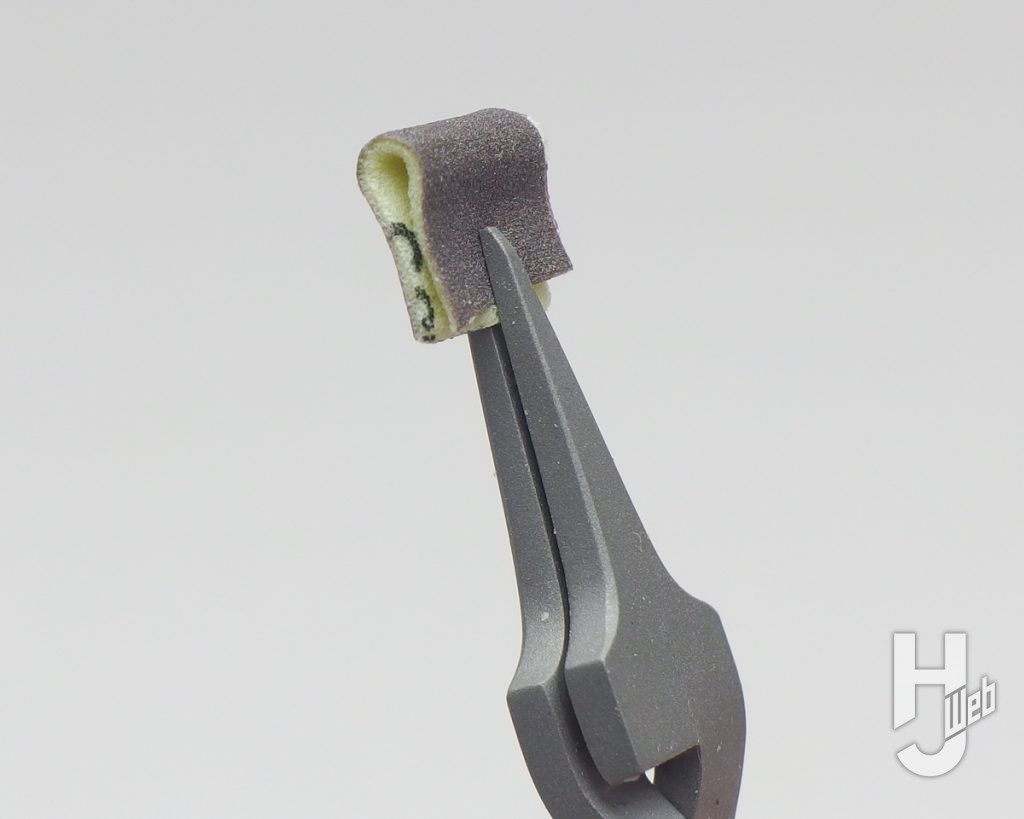▲筆者は普段このように指で持って作業するのですが、パワーヤスリホルダーを使う方が細かく扱えて、作業性の良さを感じました