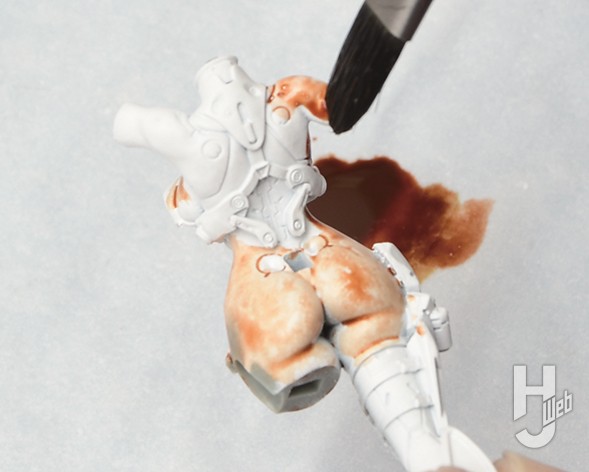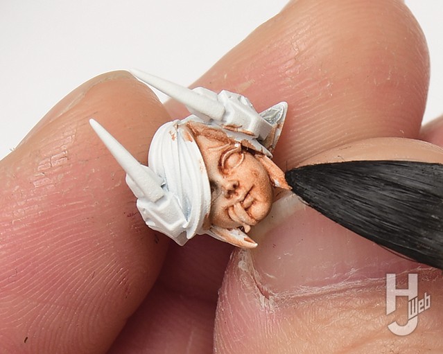 ▲ ③/ディテールの溝に自然に塗料が貯まって濃淡ができるので、サクサクと進みます。顔は明るめに2回程度の重ね塗りです