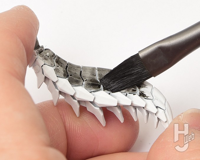 ▲ ⑤/関節部分は曲げて1回、伸ばして1回、あとは曲げながら塗り漏らしがないように塗装します