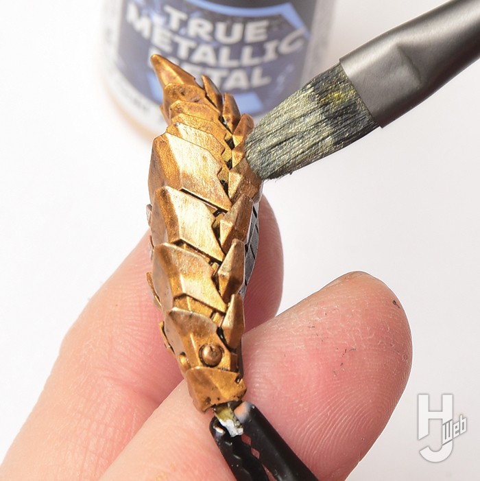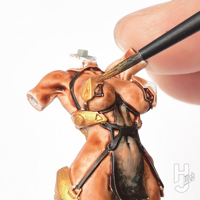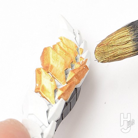▲ ⑥⑦/ボディ中央はあえて黒色に。ディテール部分の塗装には筆を使ってインペリアルゴールドのBaseで塗り分け