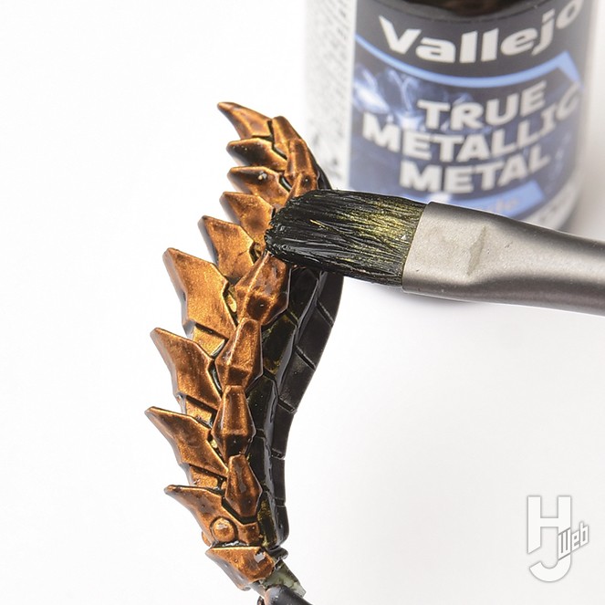 ▲ ⑥/細かい箇所はファレホブラシのプロモデラーを使用。塗り分けの境目をしっかり狙える良い筆で攻めていきましょう