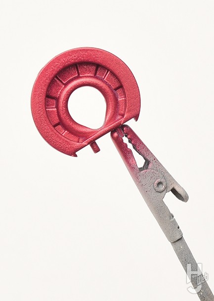 ▲ ①/今度はエアブラシを使って「コスモス&コメット」をルビーレッドでエアブラシ塗装。白色のボディをBaseとLightで塗り分けていきます。