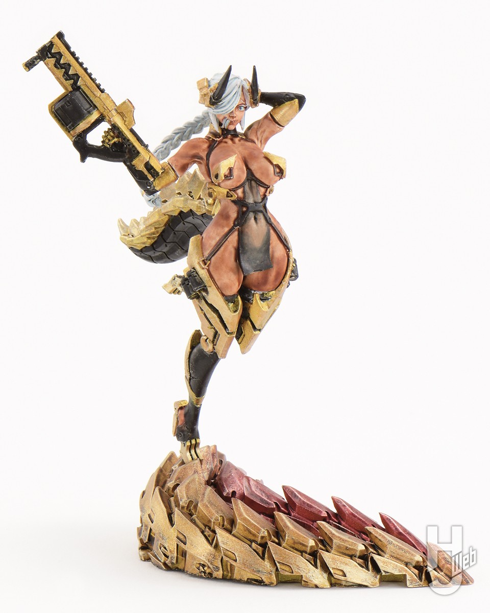 ▲ 調色も不要で塗料の役割が用意されているので、色がぶれることなく鮮やかで明るい金色のボディが仕上がりました。金色を簡単にグラデーションでき、腕の良い人のテクニックがそのまま製品になったような良さが詰まっています。おまけに台座はルビーレッドでの金、赤の2色で塗装しました