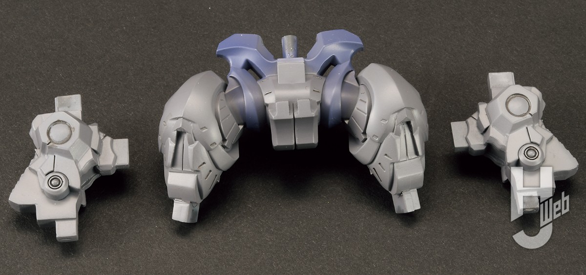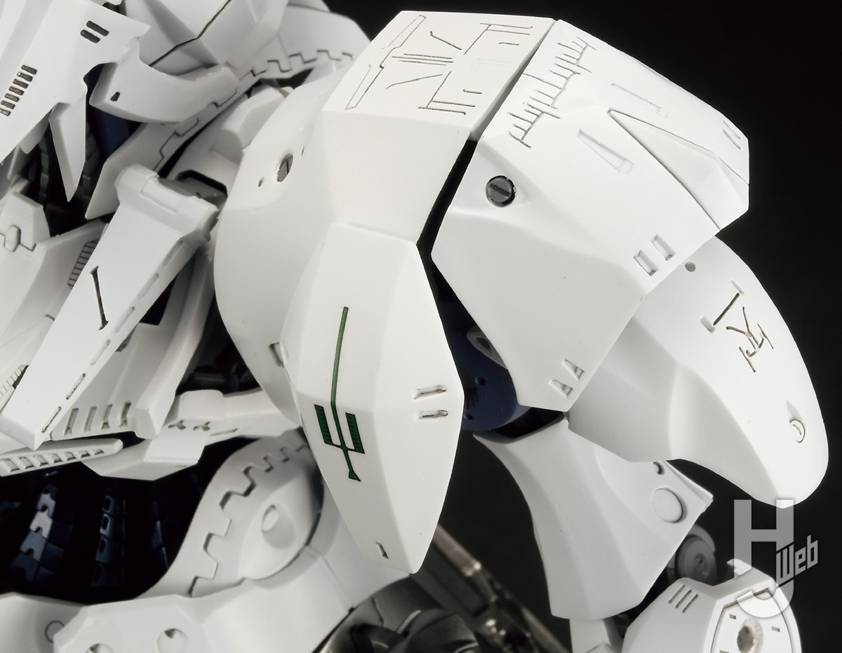 ついに出ましたコーラス仕様! 待ってました! IMS(INJECTION ASSEMBLY MORTAR HEADD SERIES)では精密な内部フレーム表現と重厚な装甲造形で立体化されていますし、専用のベイルもしっかり再現されています。コレは3騎並べたいですね~、作るカロリーは3倍ですが、チャレンジしてみたいところです(自分は無理!)。フレームや装甲の面構成を眺めるだけで何と流麗なデザインなのかと惚れ惚れします。