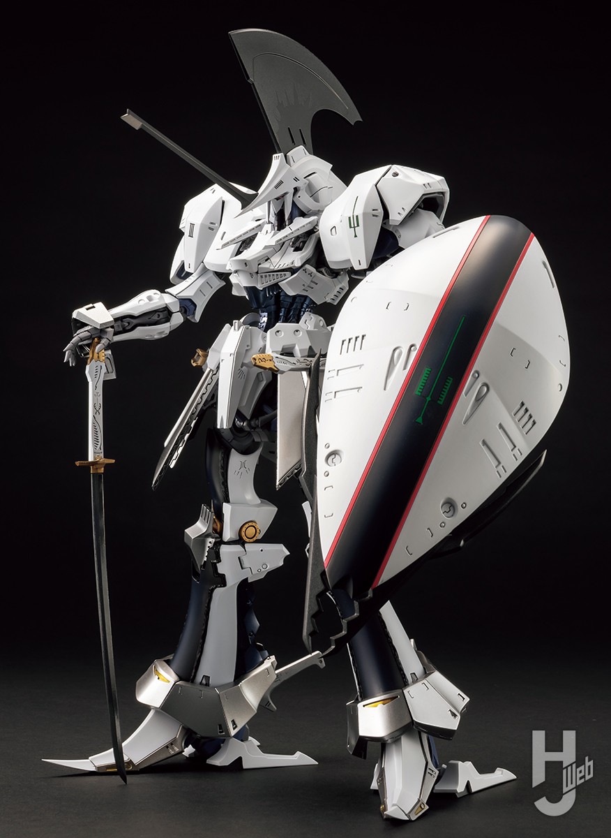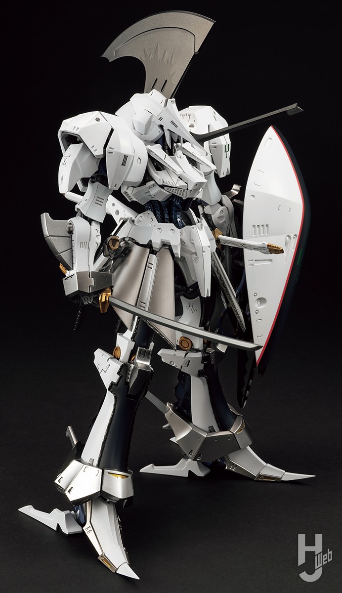 星団暦2989年にコーラス・バグーダ戦争終盤で3騎のみ投入された「先行量産型」が、ボークスIMS 1/100シリーズにラインナップ。キットは“半透明装甲が白い塗装で隠された”設定を基に不透明な白色成型。完全新規造形の専用ベイルと、コーラス王家の紋章などの水転写デカールを追加。これまでのL.E.D.とも一味違う仕上がりとなっている。作例は成型の都合で甘くなってしまいがちなモールドの深彫りや整形などを中心に工作。美しい清潔感のある半ツヤ塗装で仕上げている。