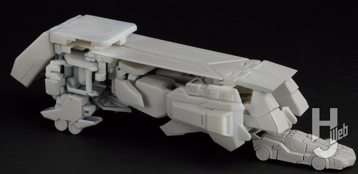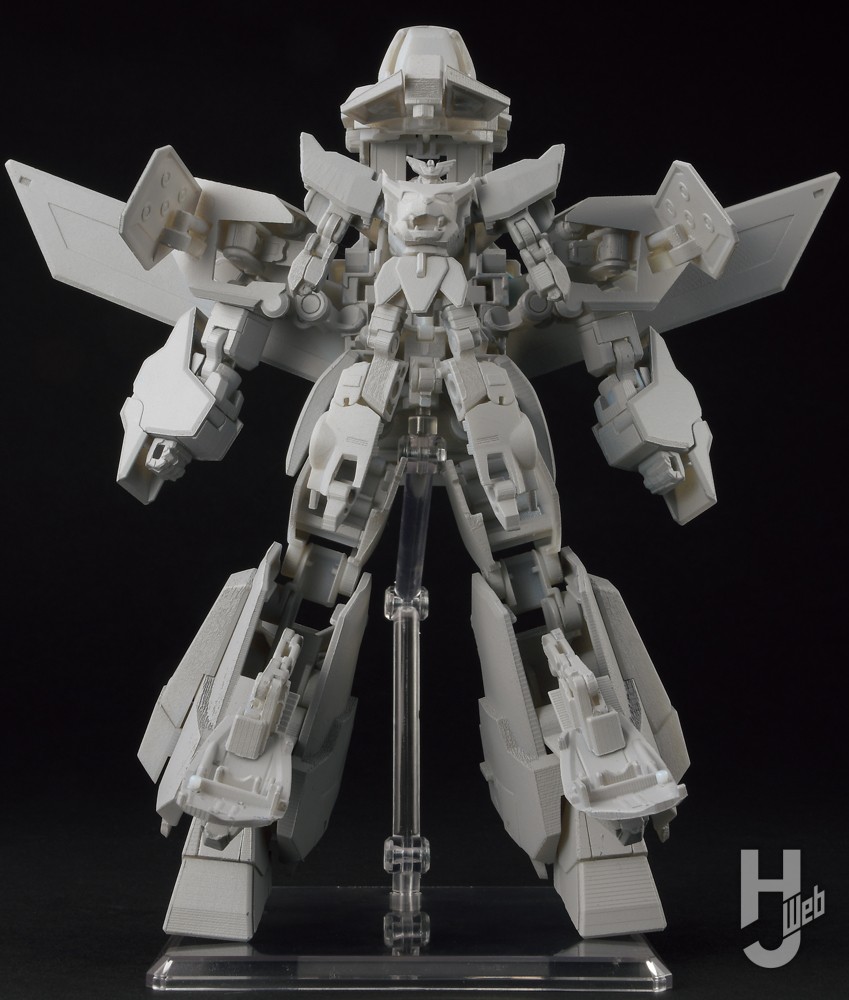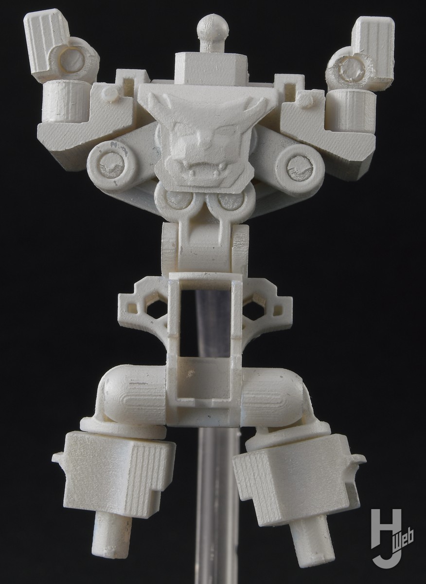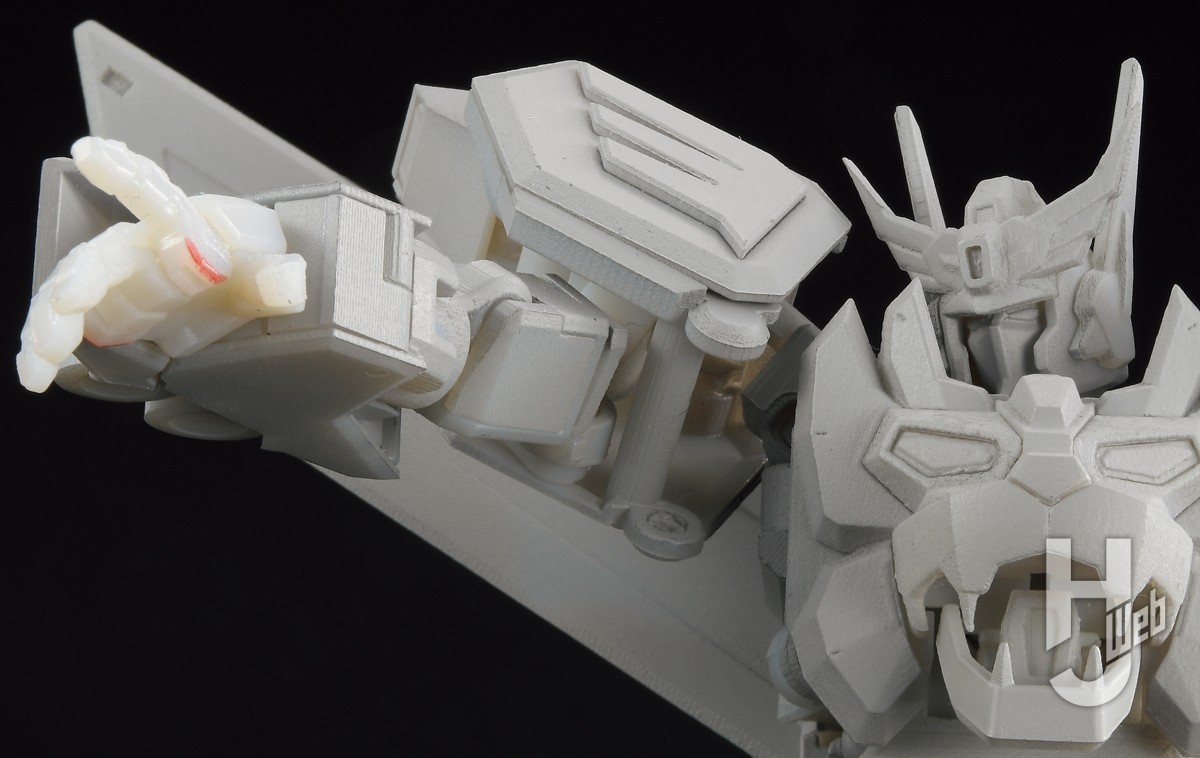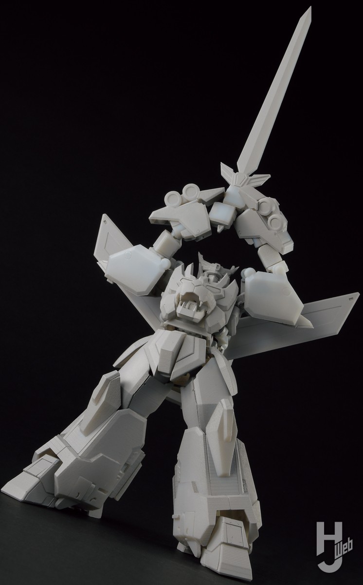 長くSMPの主幹シリーズとして展開されてきた勇者シリーズ。その最初の作品である『勇者エクスカイザー』からメインメカのキングエクスカイザーがいよいよSMPに推参! 開発中の光造形試作をお見せしよう。特徴的な合体機構と可動の両立など、SMP勇者の集大成的なアイテムとなっているぞ。