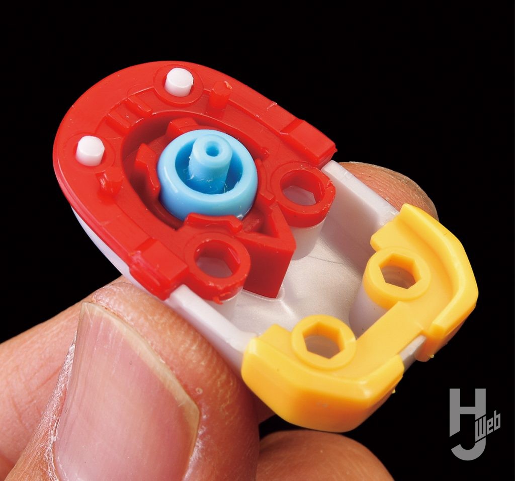 ▲コクピットを守るブラジャー内側のボディ部も成型色で色分け。チラリと見えるこれらの色が情報量を増してくれる