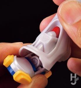 ▲劇中でも活躍する左太モモの装備「ポシェット」。こちらはパーツの内側に成型色ごとに分けられたパーツをセットし、外側に各パーツの色を露出させることによってカラフルな色分けを再現している