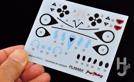 ▲劇中ではさまざまな形状に目まぐるしく変化する顔の模様。キングゲイナーの特徴のひとつと言えるこの線は、塗装済みパーツで表現されている