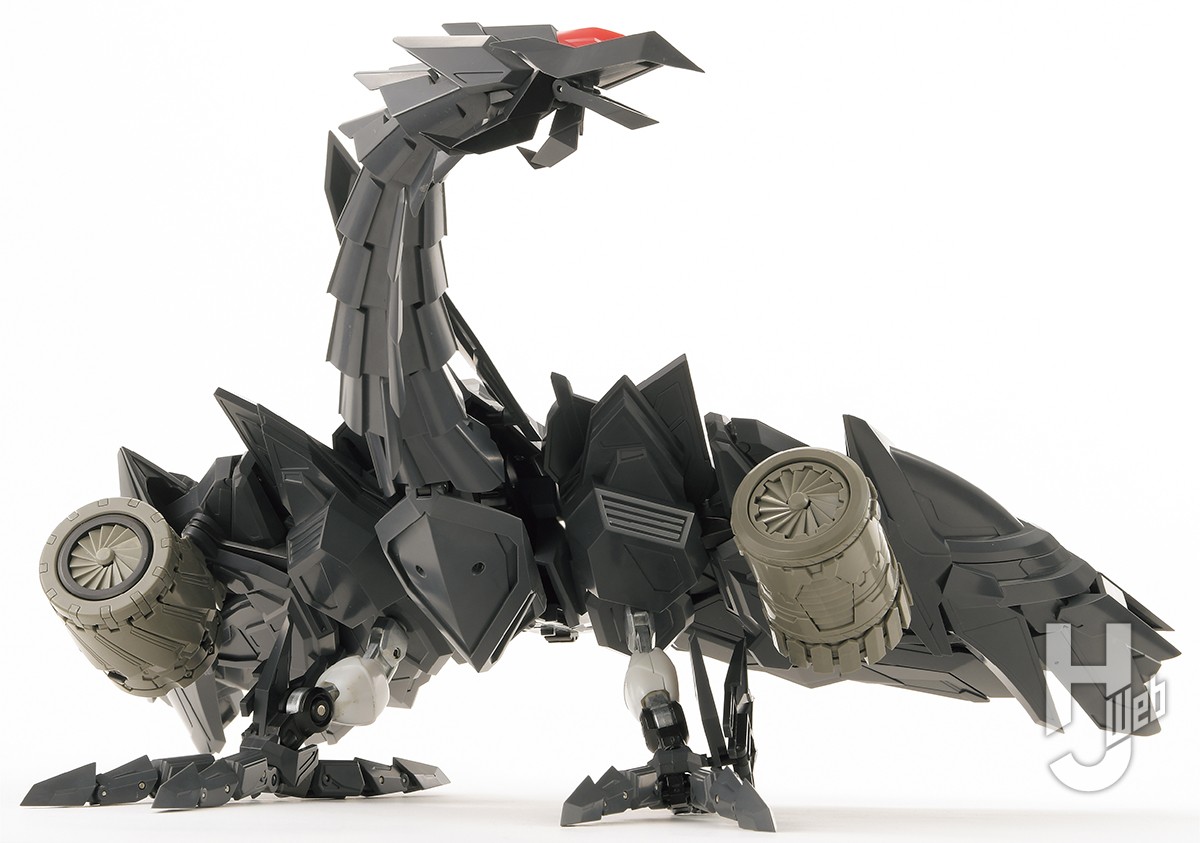 ▲ジェネシックガオガイガー時に背部を構成する「ガジェットガオー」。頸部がしなるように可動し、2本の脚で自立させることも可能だ