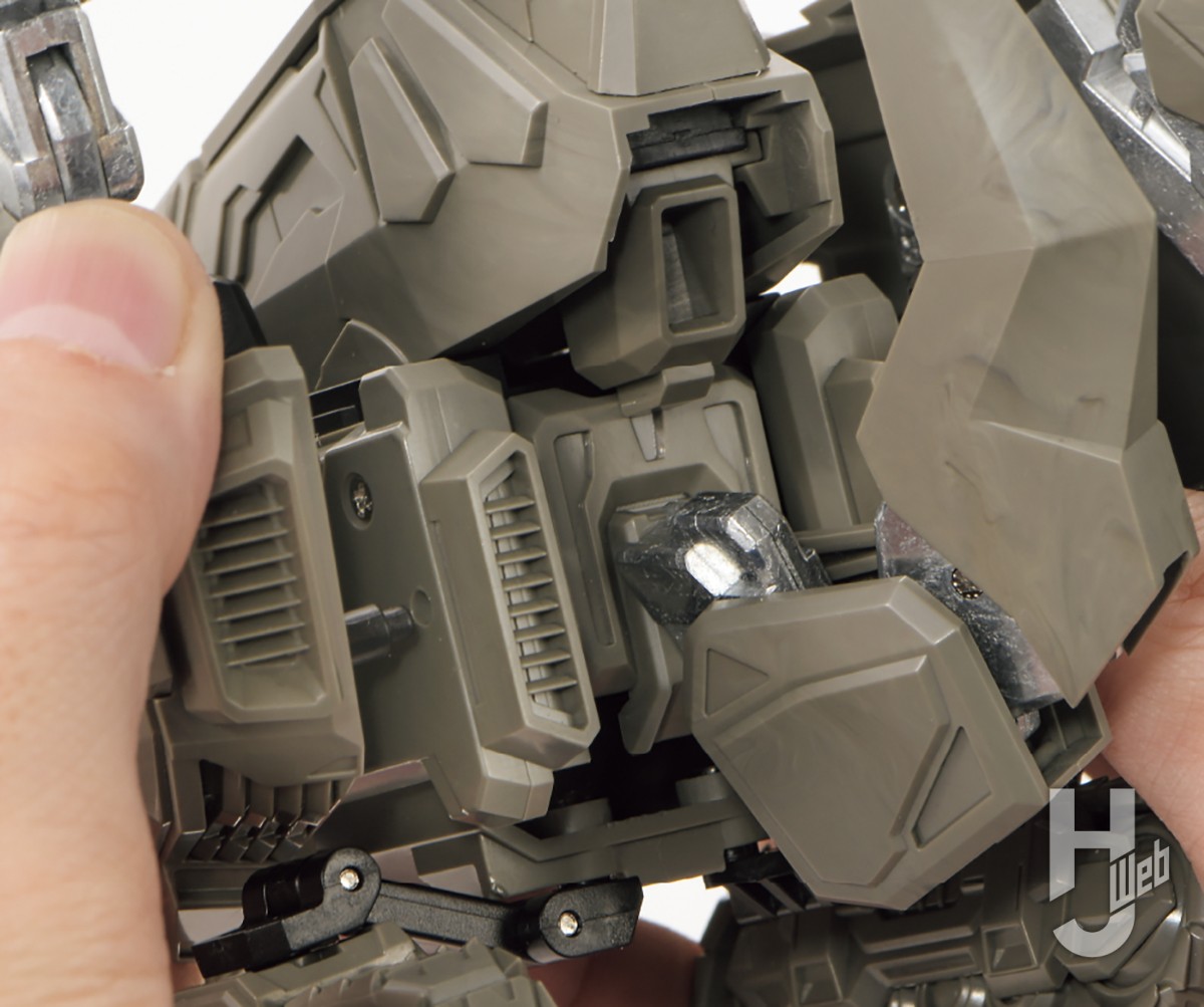 ▲後脚は側面ユニットの軸を胴体側の穴に差し込むことで、開いた状態を保持することができる