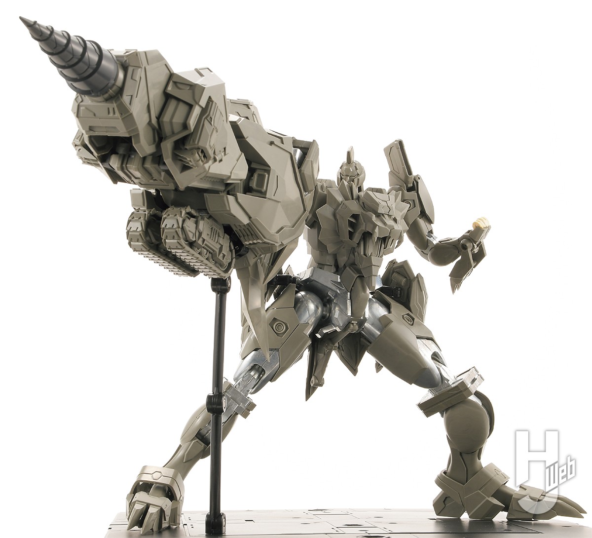 ▲ガオガイガーでもおなじみの腕にスパイラルガオーを装着した状態。この際はガイガーの手首にサポートパーツを装着してから取り付ける。月刊ホビージャパン誌面では片腕のみだが、両腕に装着した状態はぜひ製品版で楽しんでもらいたい