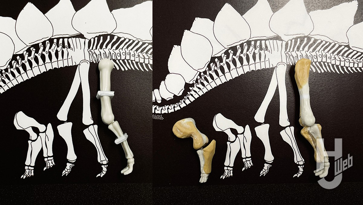 近年になって大英自然史博物館が購入した「ソフィー」の愛称で知られるほぼ完全な骨格の研究から、ステゴサウルスのそれまで知られていなかった特徴がいくつも明らかになった。今回はそうした成果を盛り込んだ「最新版」として、キットの骨格ビルドをディテールアップする。