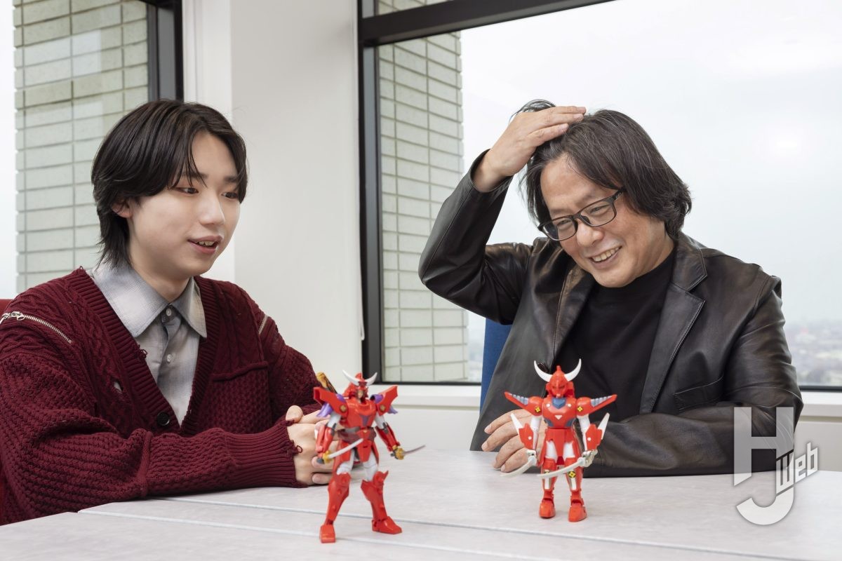TVアニメ『鎧伝サムライトルーパー』の正統続編にして、約38年ぶりとなる完全新作『鎧真伝サムライトルーパー』。第1クール最終話の熱狂冷めやらぬなか、サムライトルーパーのひとりにして、主人公・凱/灼熱のガイ(以下、凱)役を演じる石橋陽彩さん(左)とヨロイギアデザイン原案を手掛ける岡本英郎さん(右)が「トイライズ 鎧真伝サムライトルーパー 灼熱のガイ」を語る!! これは只事じゃねえ!(聞き手/河合宏之)