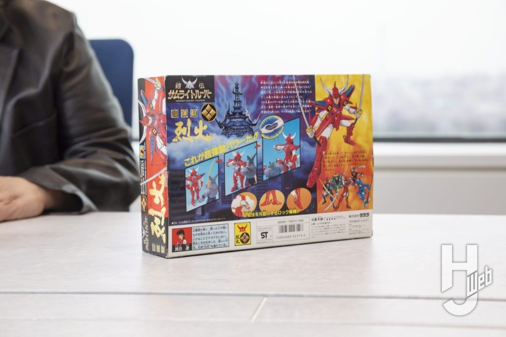 岡本 過去に僕はデザインメイトという会社にいたのですが、そこからフリーになり、初めて本格的に関わった作品は『鎧伝サムライトルーパー』でした。もともとはタカラトミー(当時:タカラ)が展開していた『魔界伝説ヒーマンの闘い』というシリーズを、「和風でやったらどうなるか?」というアイデアがスタート地点だったんです。僕はフリーとしてやっていけるかというプレッシャーもあったので、「何でもかんでも全部やる!」というスタイルでした。当時のパッケージの絵も描いていますし、パッケージデザインも担当しています。黒の帯を入れて、少し高級感が出るようなイメージで仕上げました。