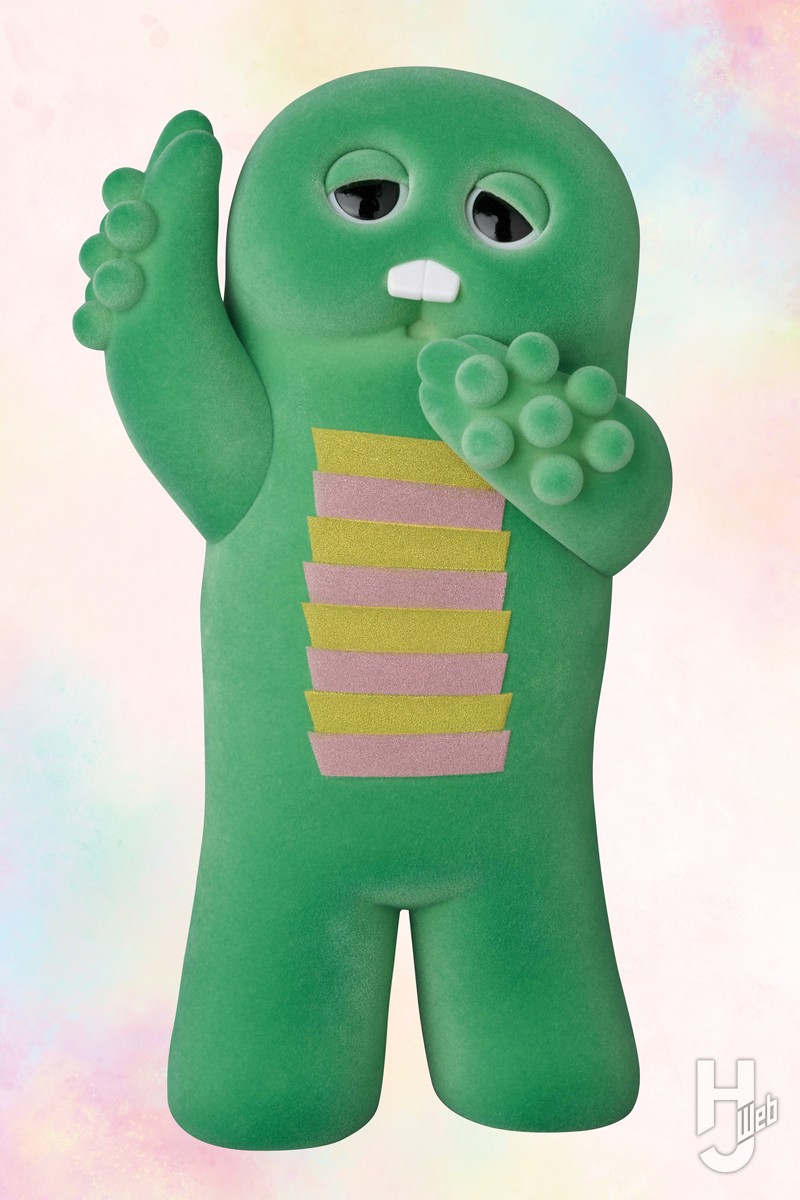 『ポンキッキーズ』の人気キャラクター・ガチャピン&ムックが、VCD(VINYL COLLECTIBLE DOLLS)に堂々のラインナップ。ガチャピンは全高が約24.5cmで、ボディ表面をフロッキー仕様にして質感を高めている。ムックの全高は約32cmもあり、全身を布製の外皮で包むことで体毛を表現。どちらも実物と見まごうほどのクオリティに仕上がっている。