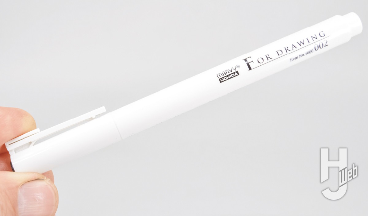 ▲キットの精密なディテールを引き立たせるためにスミ入れを施しましょう。今回は水性ドローイングペンのMARVY002を使います。ペン先が細いためスジ彫りはもちろん、金型の抜きの都合で浅くなったモールドも簡単に描き込めます