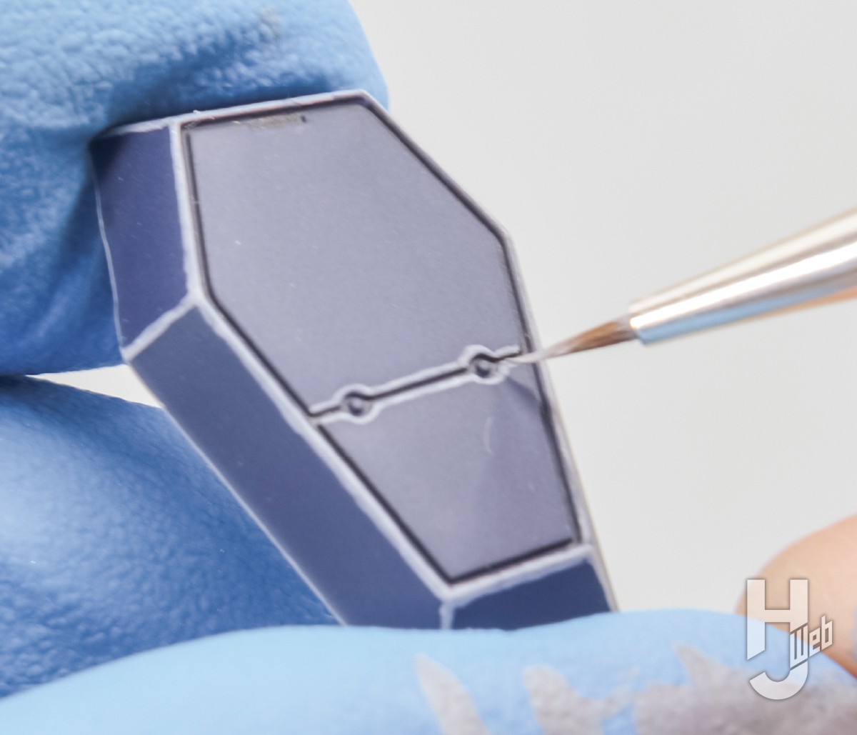▲黒いパーツはスミ入れだけでディテールを引き立てるのが難しいですよね。今回はイラスト風塗装などでよく使われる、エッジに輪郭線を描き込んで立体感を強調する「ライニング」を実践してみましょう