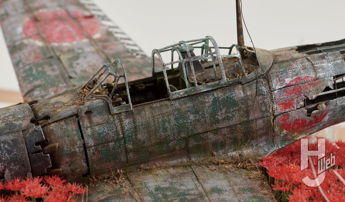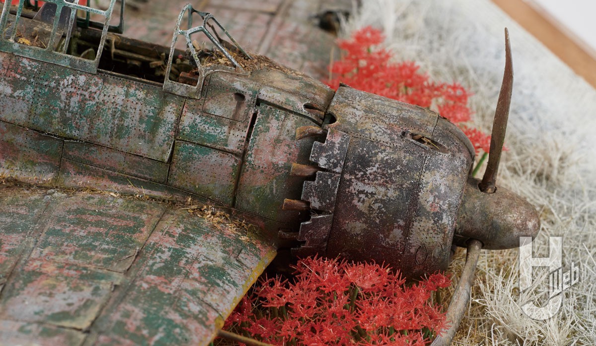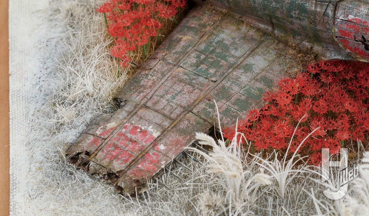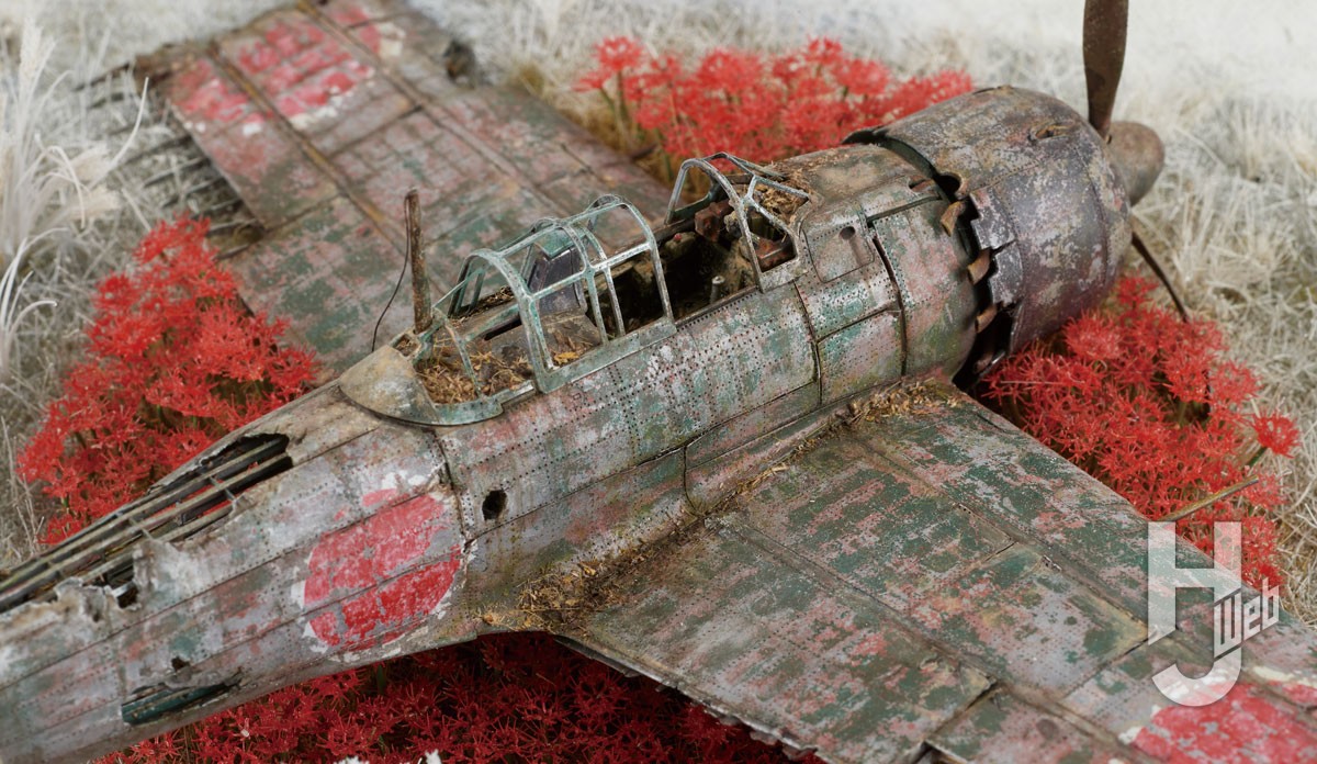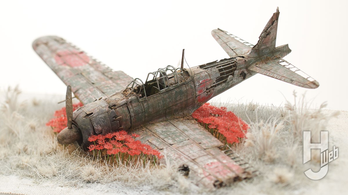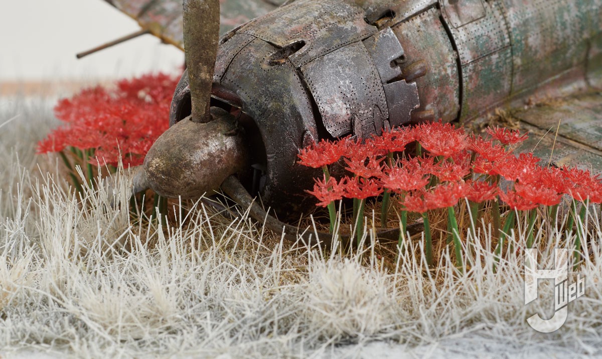 朽ちた零戦を彼岸花で包み、静謐に敬う心を模型にこめる……