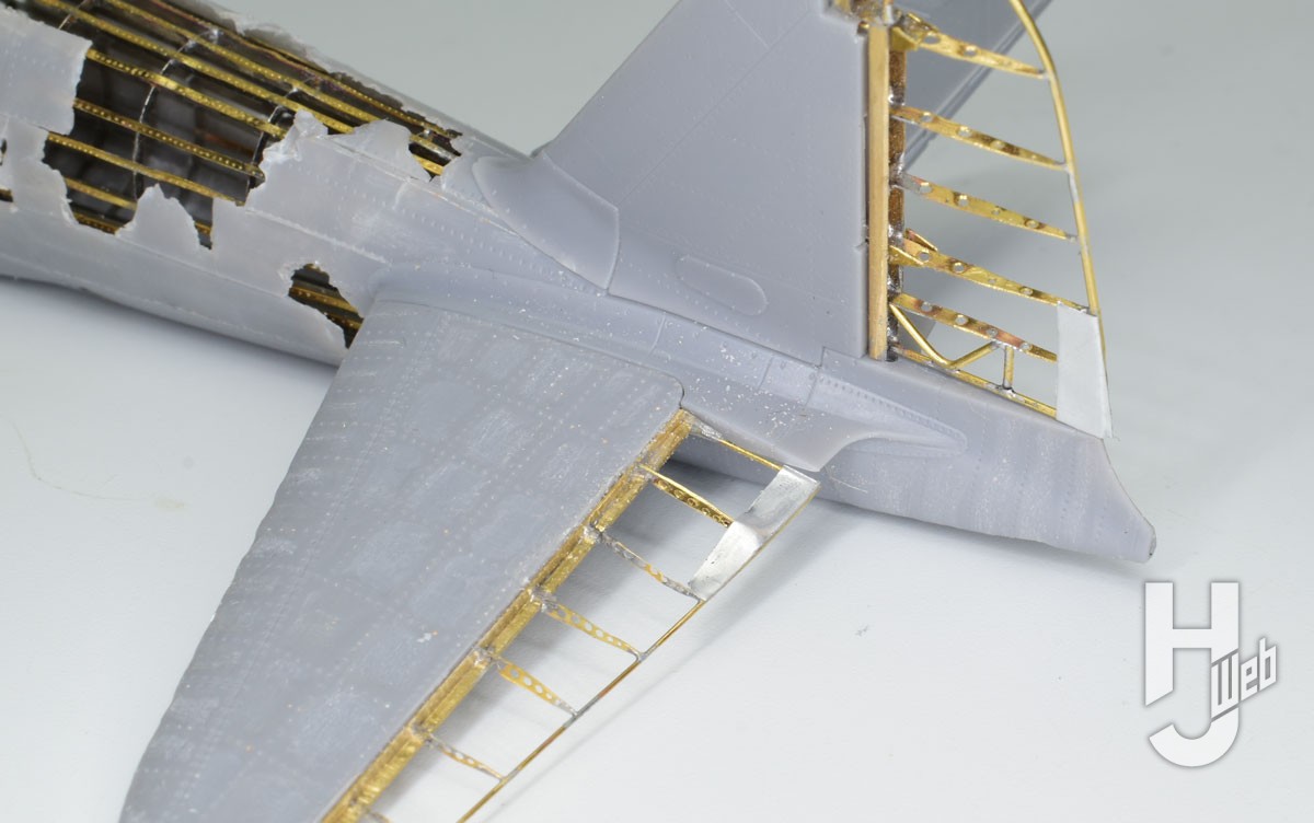 今回製作したファインモールドのキットは、かつてないほどの最高のキットだと思います。その主な特徴といえば、1.風防はクリアー部分と窓枠とが別パーツとなっている。2.機体の後部胴体部分はスライド金型を使用した一体成型で実機同様に前後で分割されている。3.3次元レーザー彫刻機による詳細な彫刻によるエンジンやコクピットの再現。4.機体全面にリベットが彫刻されていて精密感を高めている、といったところでしょうか。