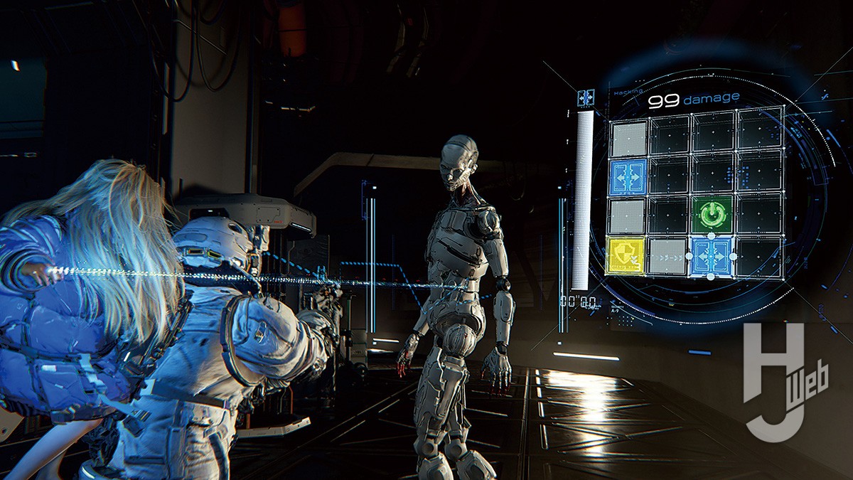 今作では、アクションとパズルが融合したゲームシステムが最大の特色。ディアナが敵を“ハッキング”して敵の強固な装甲を強制解除し、露出した弱点をヒューが多彩な銃器で狙い撃つ。同時並列的な思考が、戦いを有利に進めるカギとなるのだ。また“ハッキング”は、探索時における扉の解錠などにも用いられる。