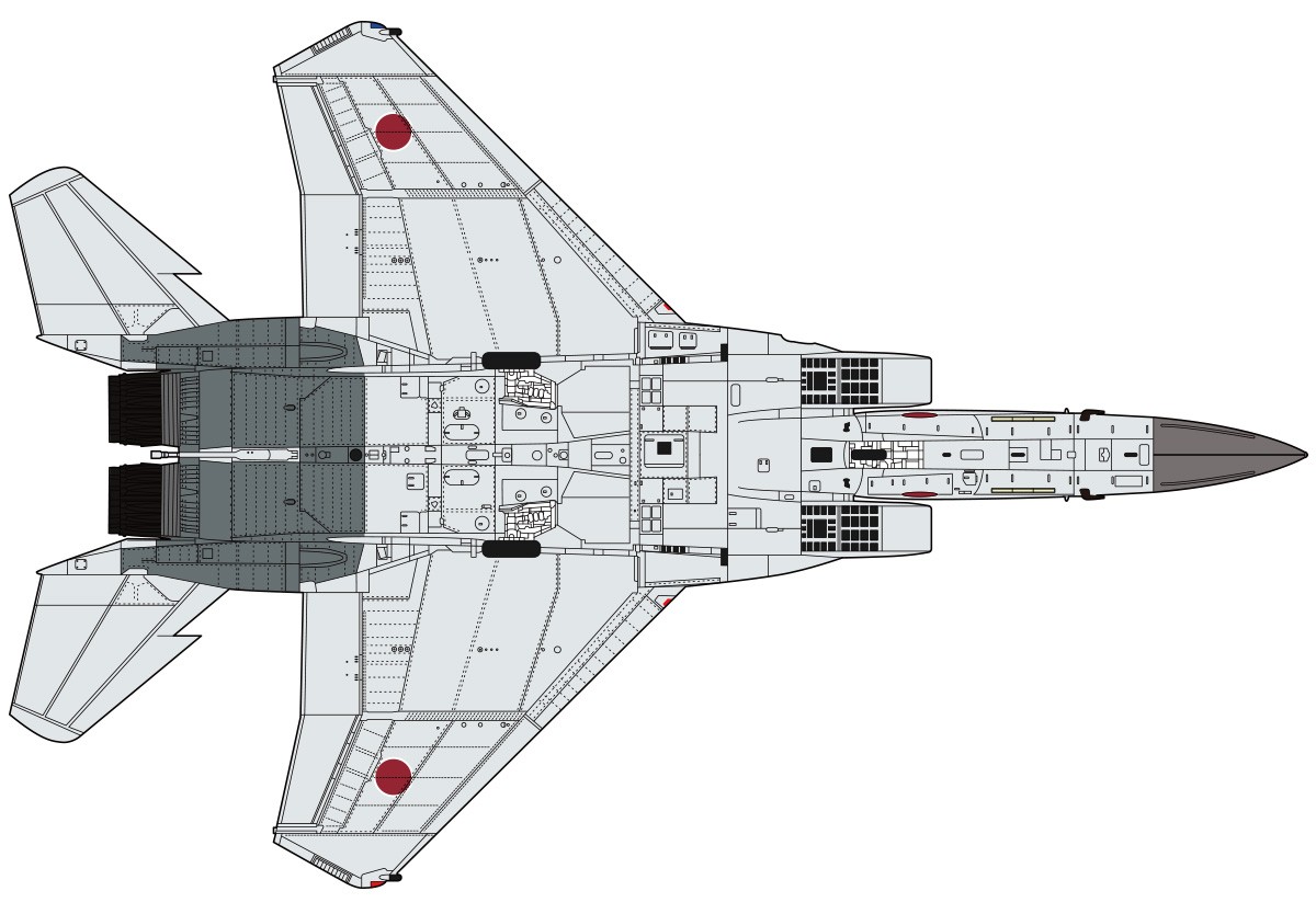 ただし航空自衛隊でF-15Cをそのまま使うのは難しい。そこでF-15Cおよびその複座型のF-15Dをベースとしながら、電子戦装置やレーダー警報受信機など、一部装備品が日本独自の装置に置き換え、核兵器の運用能力を撤去したF-15Jと複座型のF-15DJが新たに開発されたのであった。