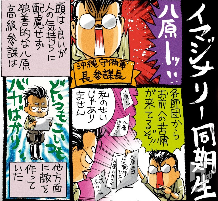 陸軍中佐。第五砲兵司令部高級部員。陸軍士官学校35期。第五砲兵司令官和田中将を助け沖縄戦を戦う。1945年6月20日摩文仁の軍司令部を訪れ同期生の八原と日本の将来を論じ、壕を後にした。