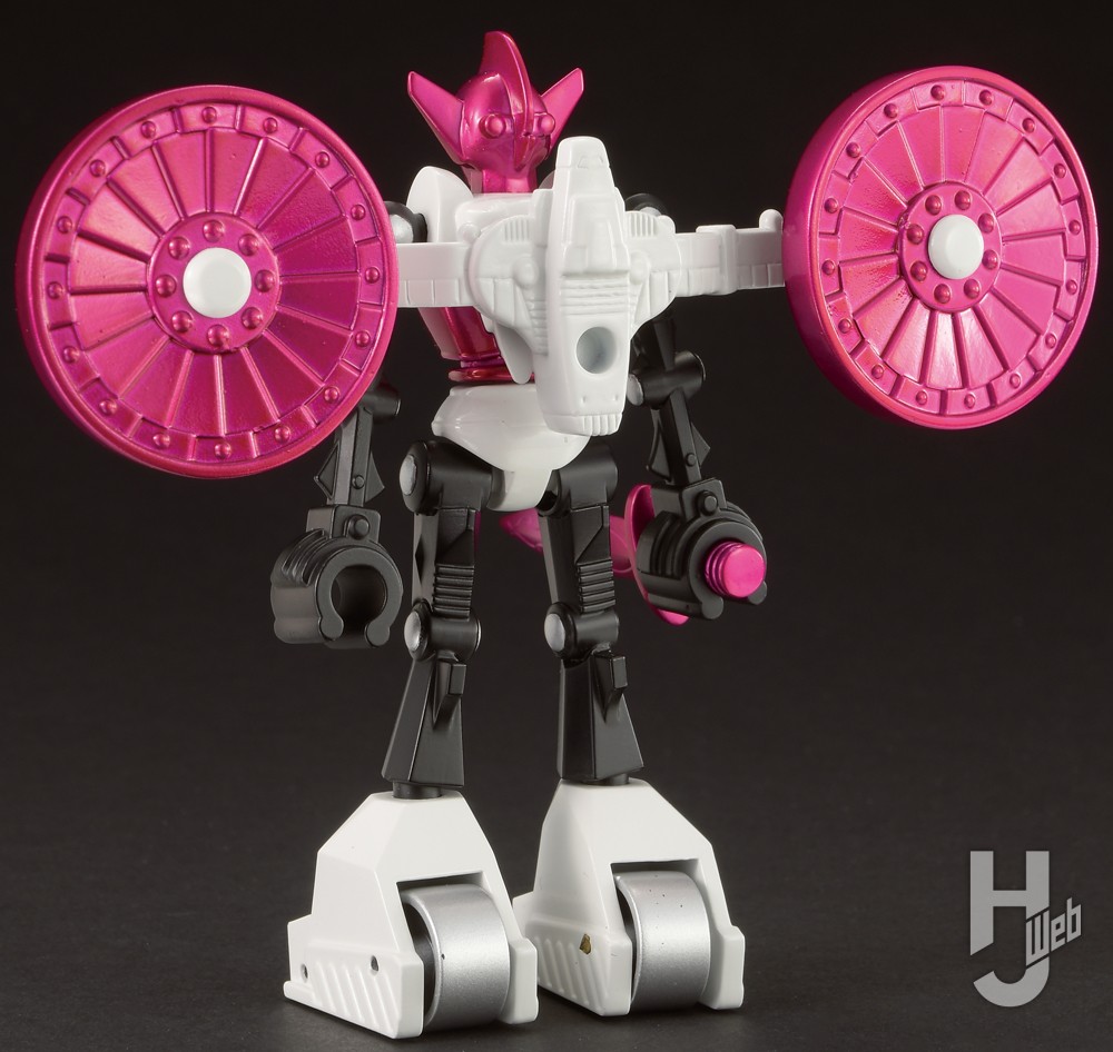 ▲フライングプレーンには、ターボファンをはじめディテールが追加されている。また、胸部のメッキパーツが背面に回り込む構造も特徴的だ。背面を見ると腰パーツが分割されており、ひねりを加えたポージングにも対応する