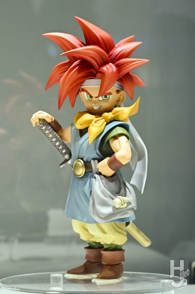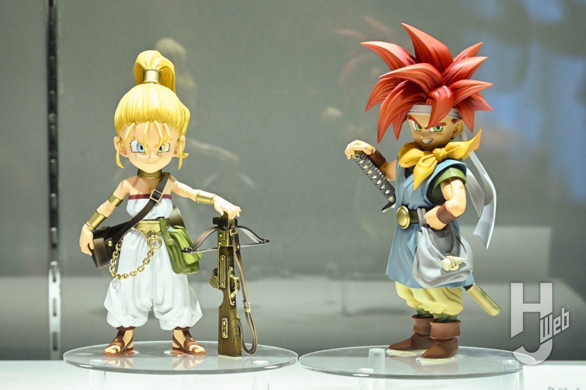 スクウェア・エニックスの人気作のグッズの物販や、近日予約開始予定の『クロノ・トリガー』FORM-ISM クロノ、マールのフィギュアなどが展示されています。