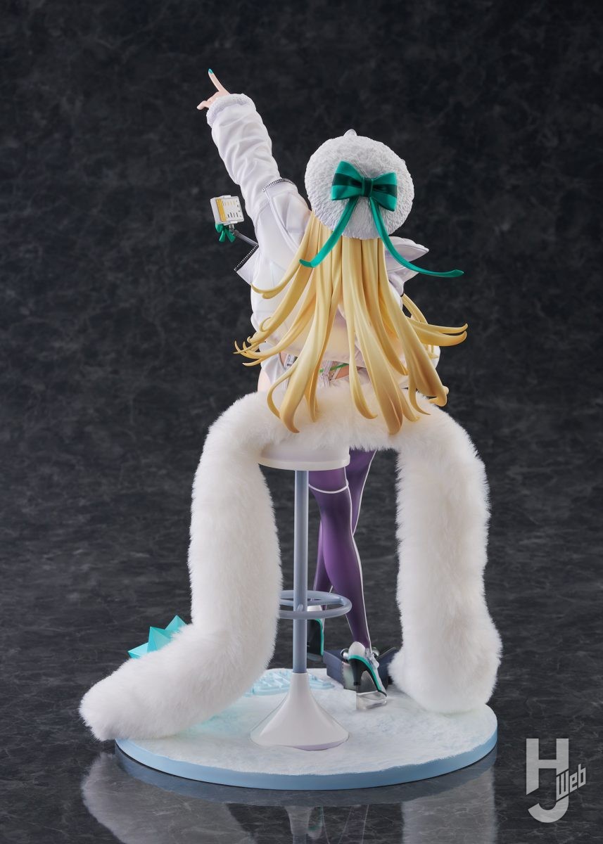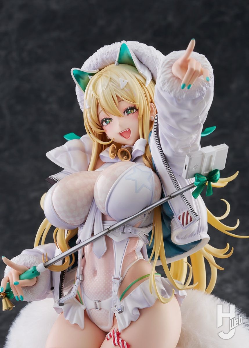 戦場に響く銃声と絆~地上奪還ガンガールRPG~『勝利の女神:NIKKE』より、テトラのタレント部隊所属の「ルピー」が、特別感あふれる真っ白なサンタクロース姿で登場。椅子に座り、セルフィースティックを構えたイラストをフィギュアとして忠実に立体化。大胆な衣装デザインと、健康的な肉体美を余すところなく表現。衣装の艶感、ソックスやアクセサリーの繊細な模様に至るまで、細部へのこだわりが光ります。ボリュームのある純白のファーを贅沢に使用することで、ホリデーシーズンにふさわしいゴージャスで華やかな存在感を演出しています。みんなの願いを叶えるため、特別な装いで降臨したルピーを、ぜひあなたのお手元でじっくりとご堪能ください。