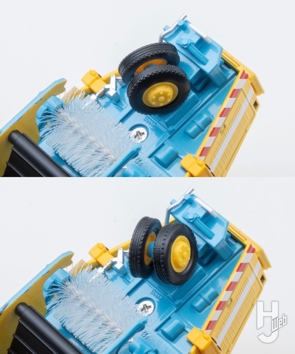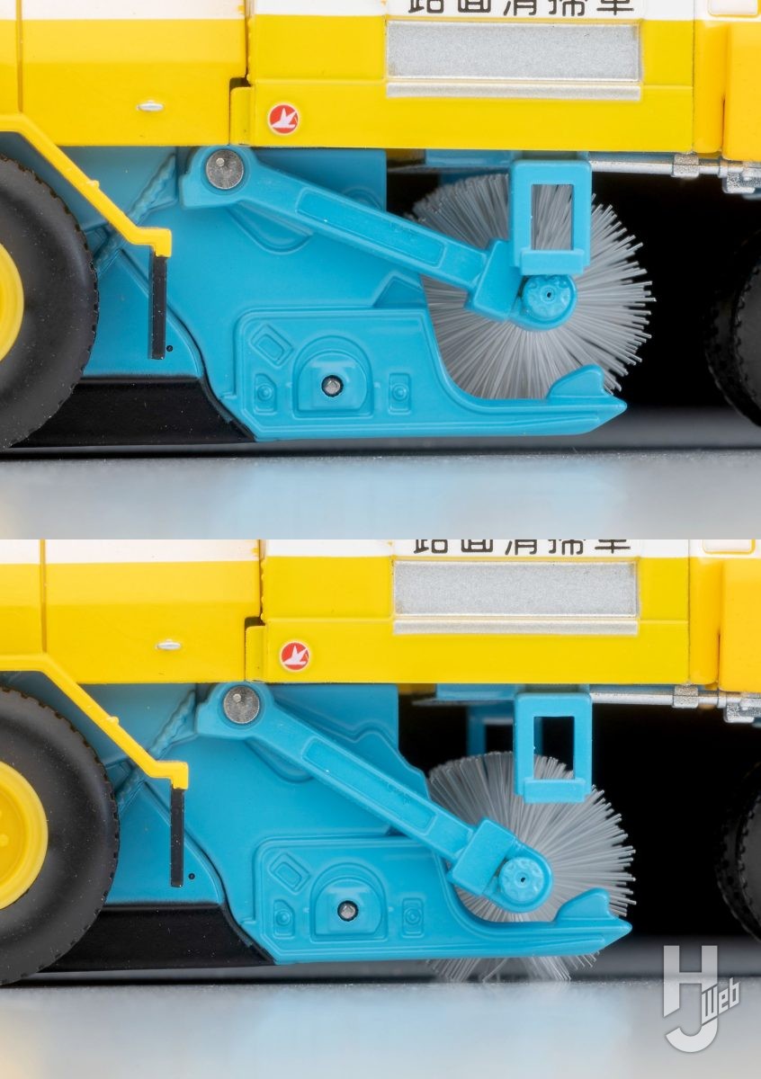 バケット部分や各所のブラシなど、車両の特徴となるポイントは可動式とし、