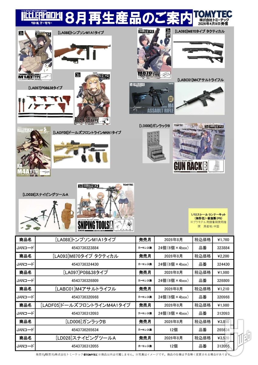 【リトルアーモリー】2026年8月 7製品再生産決定!