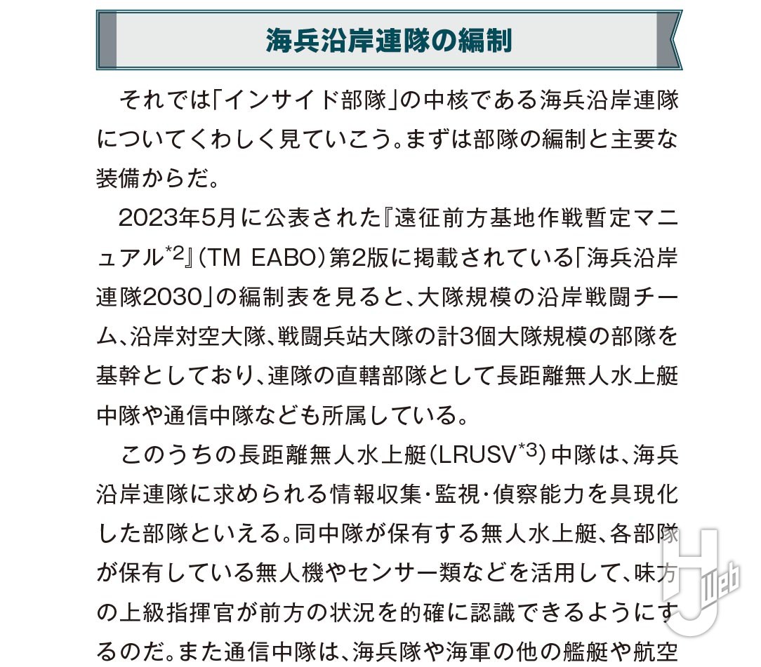そこで、本書では現在進行中のアメリカ海兵隊の大規模な変革と、それを必要としている海兵隊やアメリカ海軍、さらにはアメリカ軍全体のあたらしい用兵思想、それを実行するために編成される海兵隊のあらたな部隊とその装備、指揮統制の方法などを、イラストとともにくわしく解説していきます。