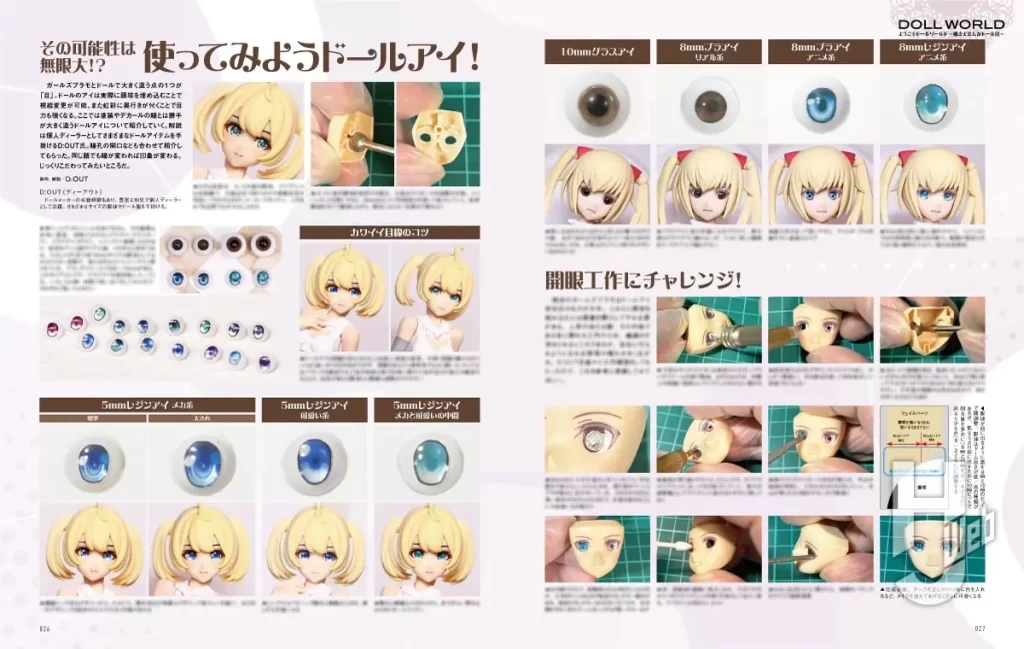 ガールズプラモとドールの大きな違いの一つの「瞳」についても追求! ドールアイのの素材と特色をご紹介しながら、ガールズプラモにドールアイを埋め込むやり方を丁寧に解説いたします。