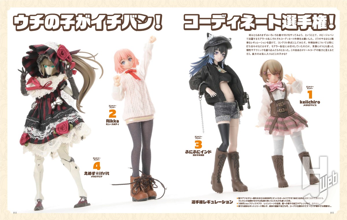 ホビージャパンで活躍する4人のモデラーがドールコーディネートにチャレンジ! 「ガールズプラモ×ドール」に欠かせない布服を使用して、多種多様な「可愛さ」を追求した作例の数々をじっくりとご堪能ください!