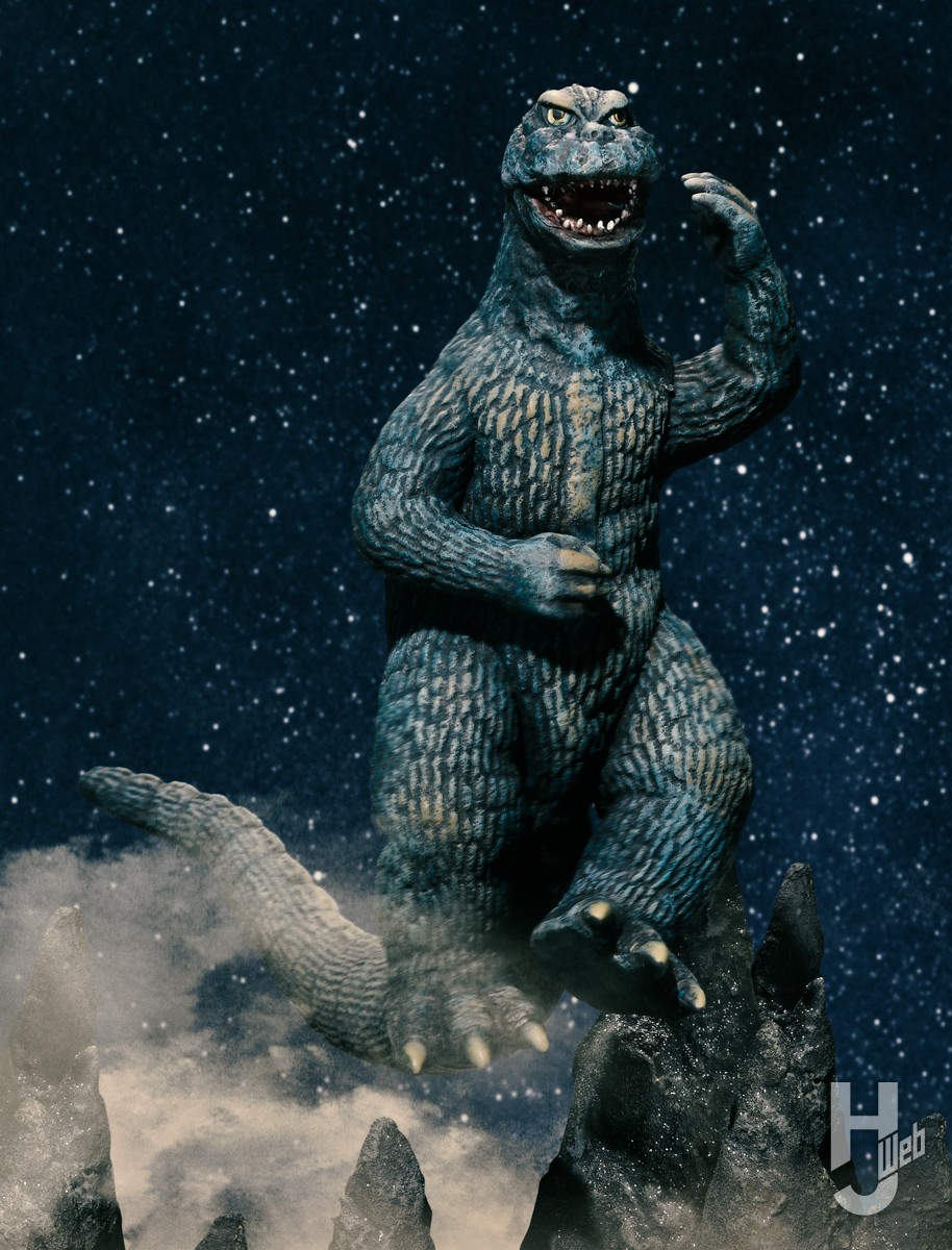 「ムービーモンスターシリーズ躍動(ポージング)」に『怪獣大戦争』の“シェー”ゴジラが登場。劇中シーンを切り取ったその姿をさらに引き立てるべく、情景王・山田卓司がスタイロフォームから新造したX星の大地イメージのベースを製作。キングギドラとの激闘を制したゴジラの勇姿をビネット風に作り上げています。